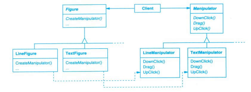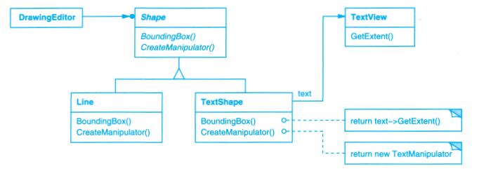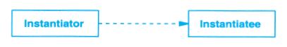 另一个有用的表示是说明哪个类创建哪个类的对象。由于OMT不支持这种表示,所以我们用虚线箭头来标记这种情况。我们称之为“创建”关系。箭头指向的是被实例化的对象。在图B-1c中,CreationTool创建LineShape对象。
