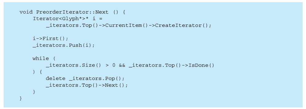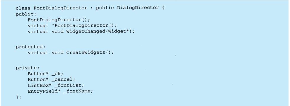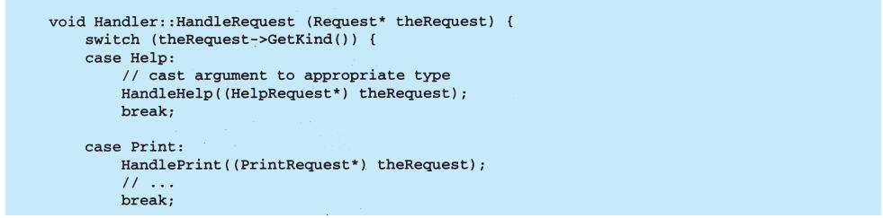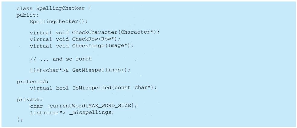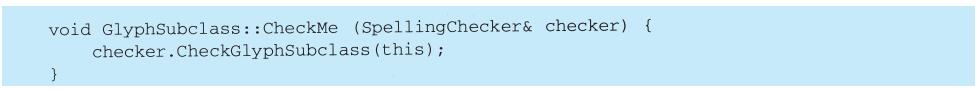 程序设计语言的选择非常重要,它将影响人们理解问题的出发点。我们的设计模式采用了Smalltalk和C++的语言特性,这个选择实际上决定了哪些机制可以方便地实现,而哪些则不能。若我们采用过程式语言,可能就要包括诸如“继承”“封装”和“多态”的设计模式。相应地,一些特殊的面向对象语言可以直接支持我们的某些模式,例如:CLOS支持多方法(multi-method)概念,这就减少了Visitor模式的必要性。事实上,Smalltalk和C++已有足够的差别来说明对某些模式一种语言比另一种语言表述起来更容易一些(参见5.4节Iterator模式)。