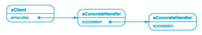 对象图仅仅描述实例。它描述了设计模式中的对象某个时刻的状况。对象的名字通常表示为“aSomething”,其中Something是该对象的类。我们用来表示对象的符号(对标准OMT稍作修改)是一个圆角矩形,并以一条直线将对象名与对象引用分开。箭头表示对象引用。如图B-2所示。
