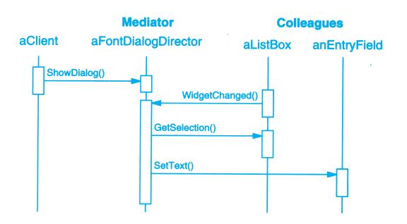交互图展示了对象间各请求的执行顺序。图B-3就是一个交互图,它描述了一个Shape对象是如何加入某个Drawing对象中去的。