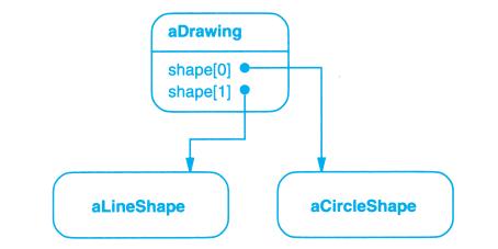 OMT还定义了一种实心圆点,表示“多于一个”。当圆点位于引用的头部时,它表示指向或聚集多个对象。图B-1c中Drawing聚集了多个Shape类型的对象。