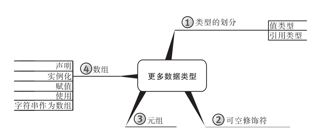 ·第3章 :本章深入讲解数据类型的两大类别——值类型和引用类型。然后讲解隐式类型局部变量、元组、可空修饰符以及C# 8.0引入的可空引用类型。最后深入讨论基元数组结构。