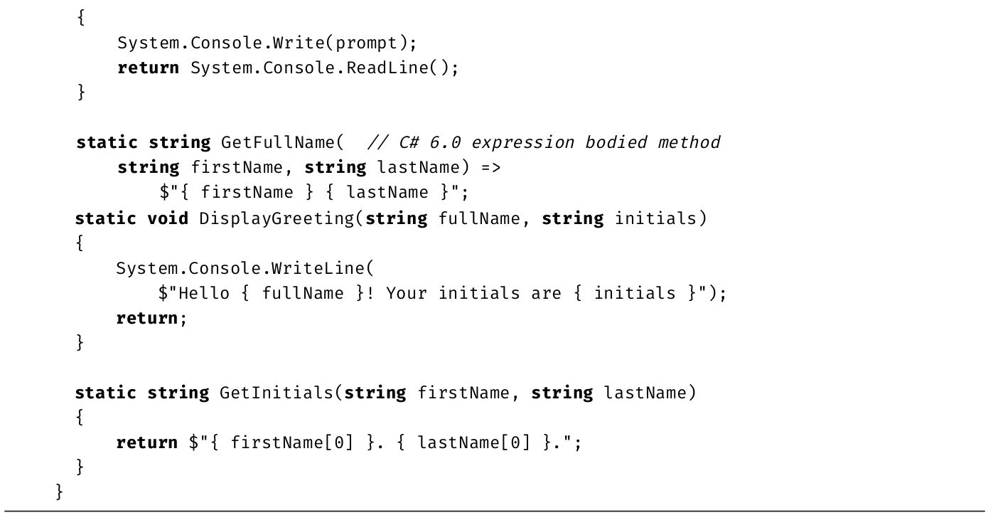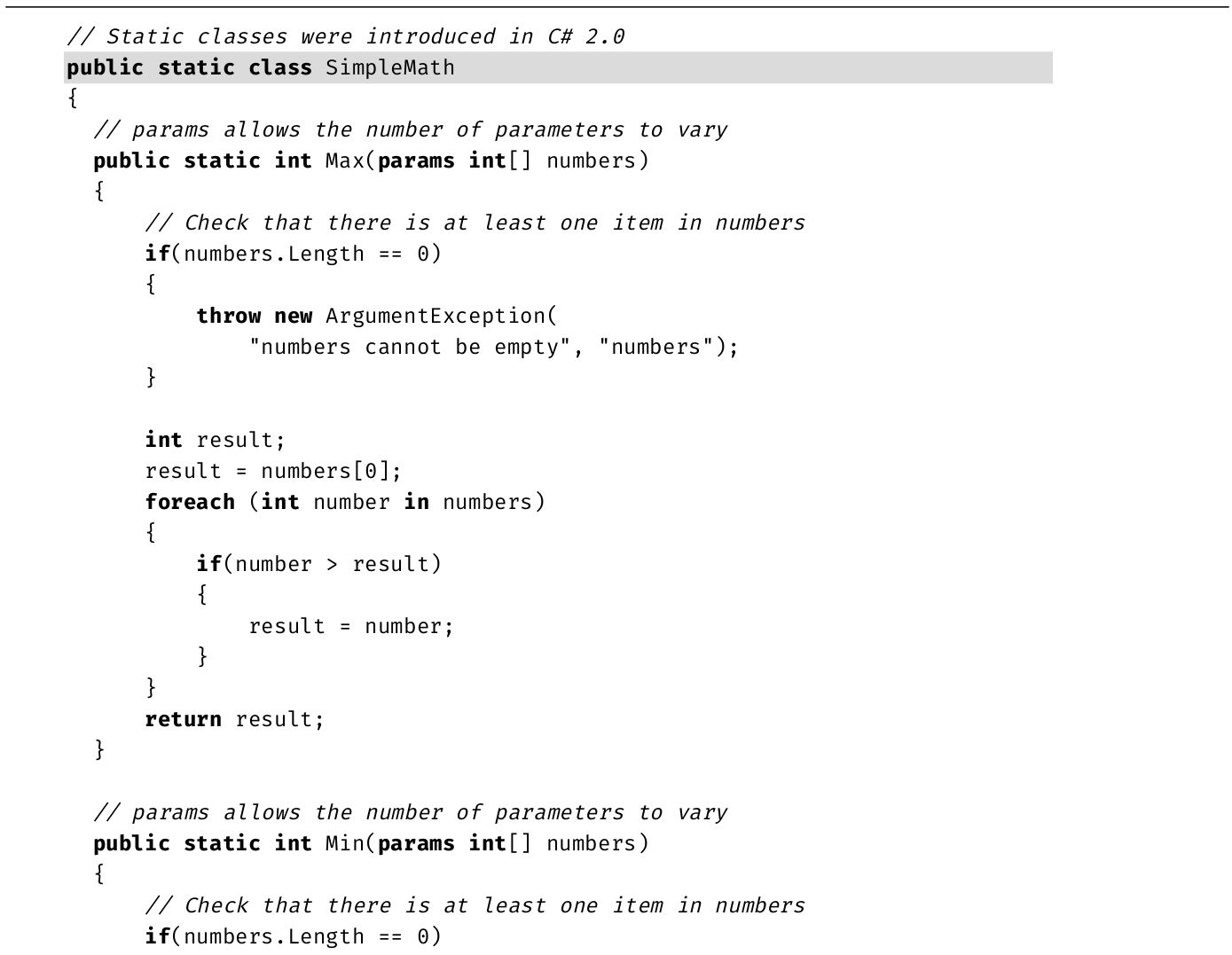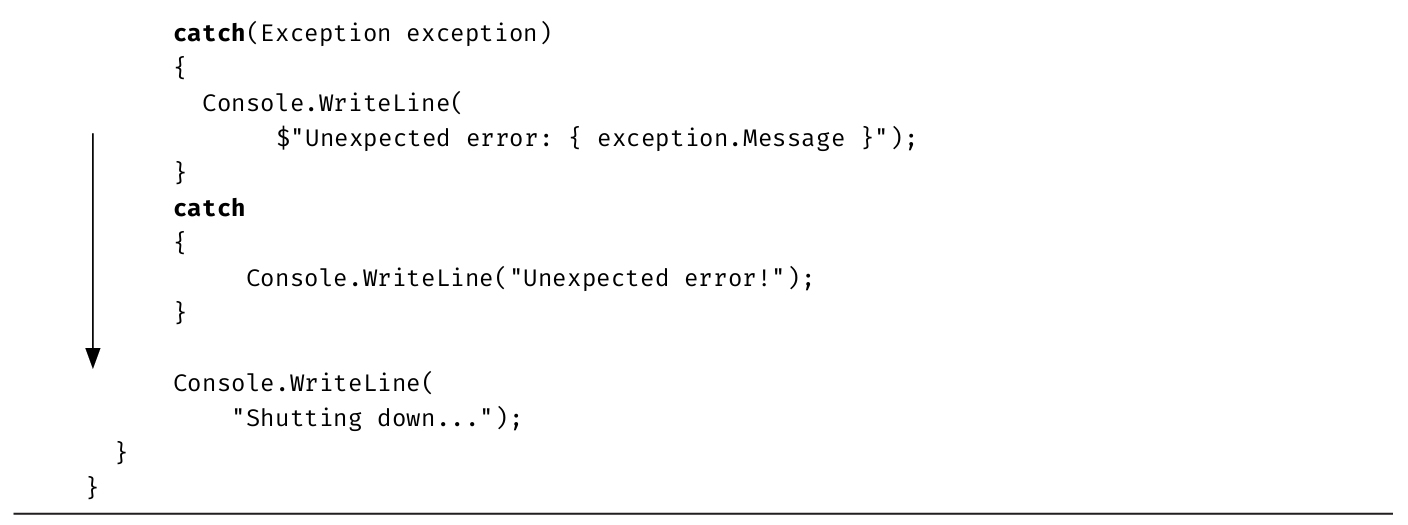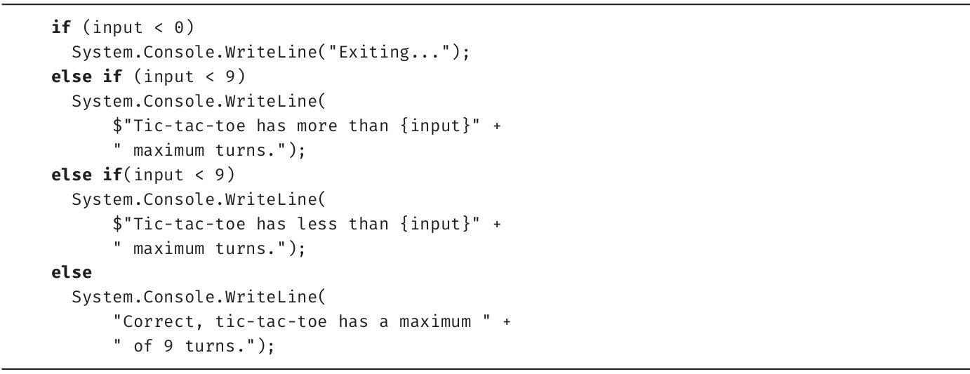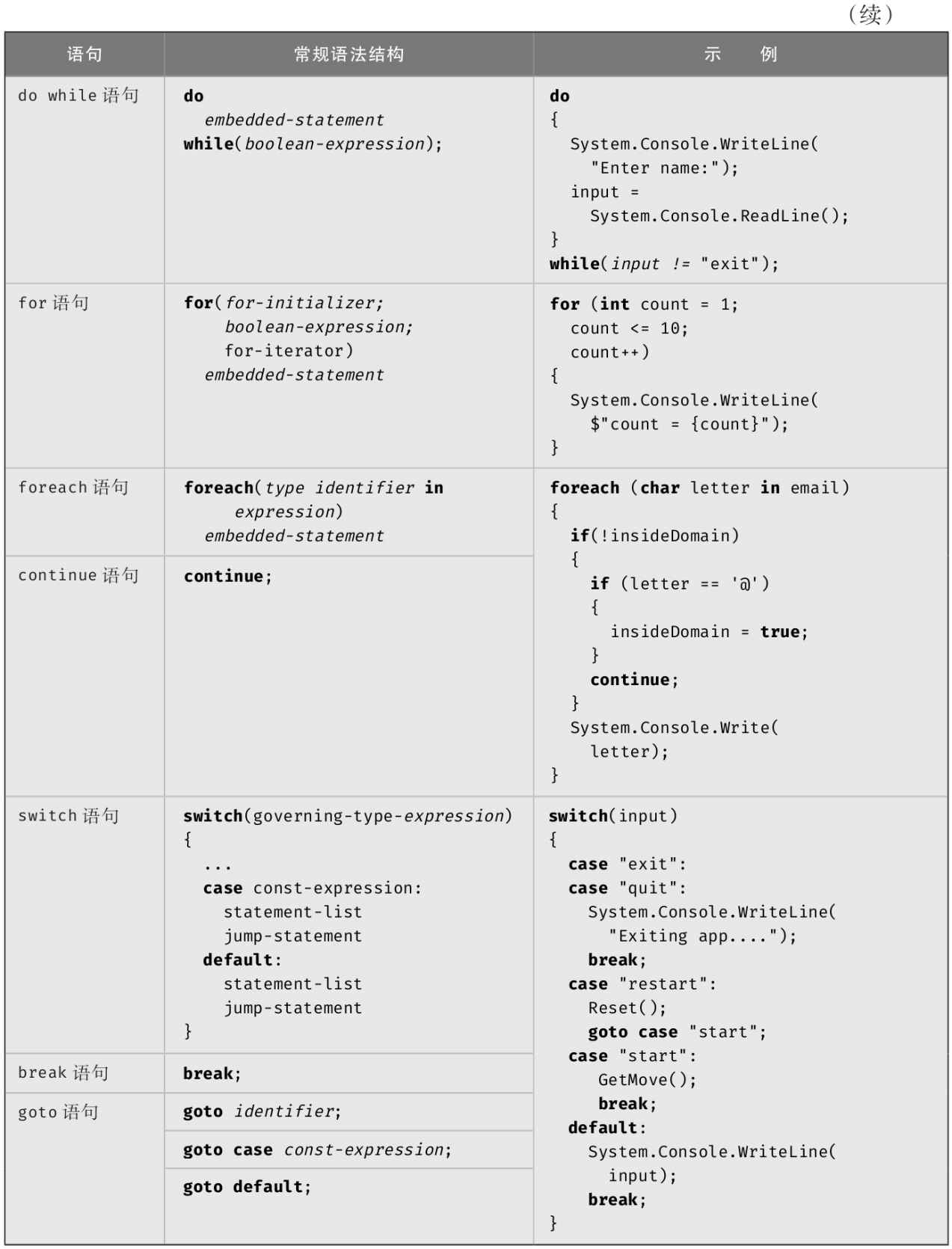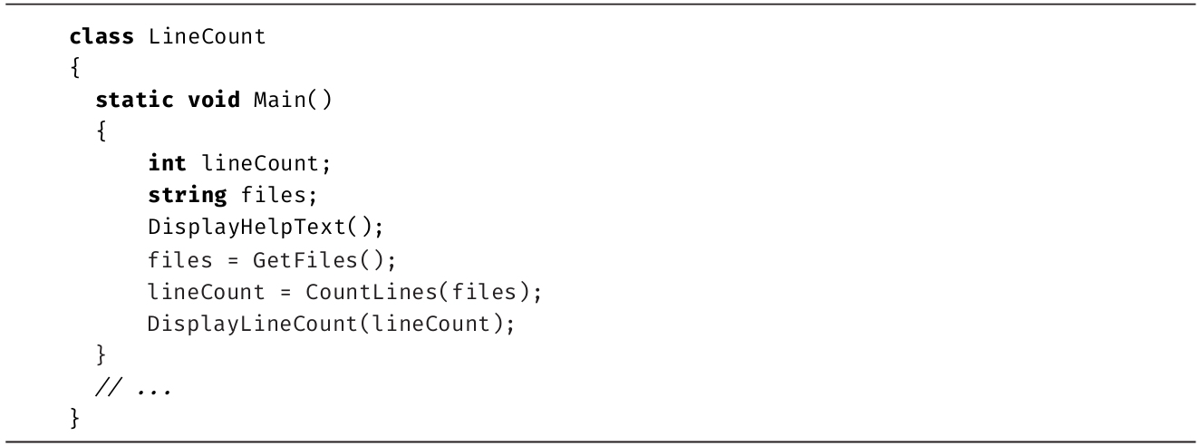 本书开始几章会指导你学习顺序编程结构。在这种编程结构中,语句按编写顺序执行。该结构的问题在于,随着需求的增加,复杂性也会指数级增加。为降低复杂性,将代码块转变成方法,从而产生了结构化编程模型。在这种模型中,可以从一个程序中的多个位置调用同一个代码块,而不需要复制代码。但即使有这种结构,程序还是会很快变得臃肿不堪,需要进一步抽象。所以,在此基础上人们又提出了面向对象编程的概念,这将在第6章中讨论。在此之后,你将继续学习其他编程方法,比如基于接口的编程和LINQ(以及它促使集合API发生的改变),并最终学习通过特性(attribute)进行初级的声明性编程(第18章)。