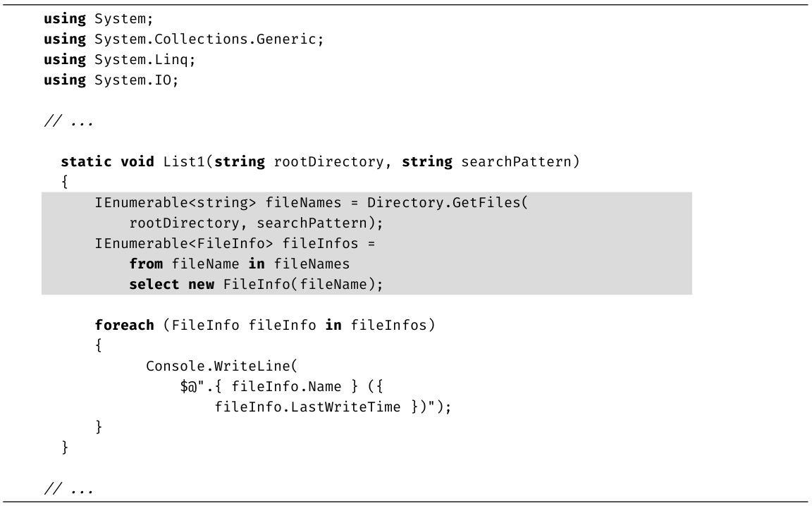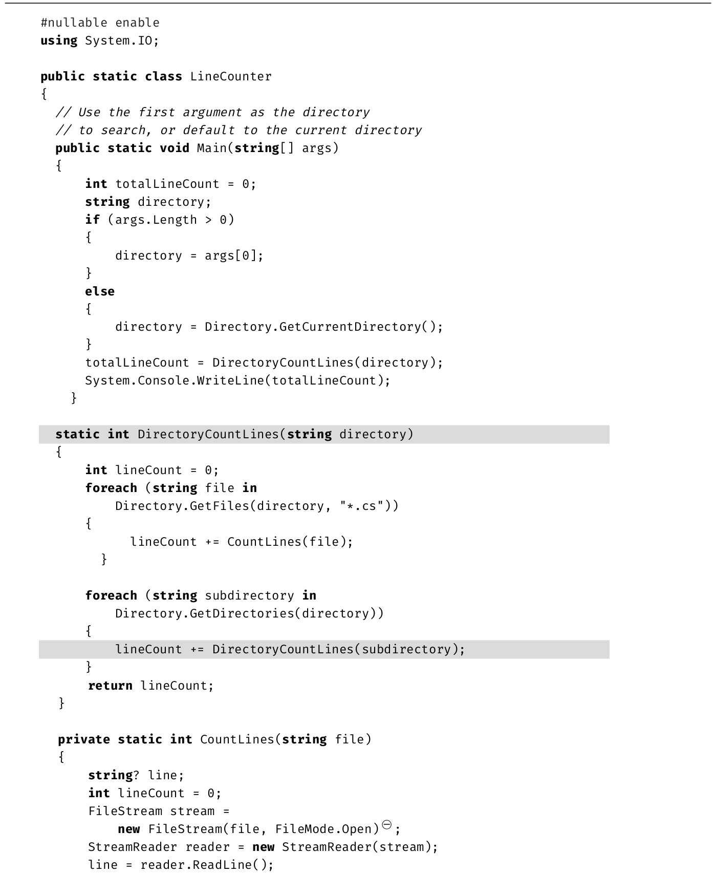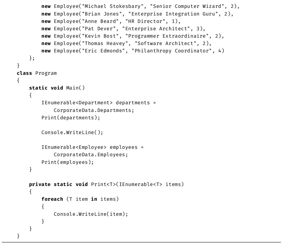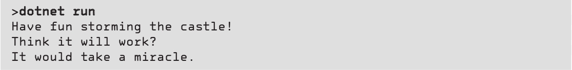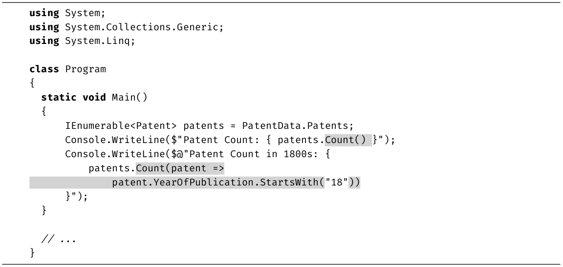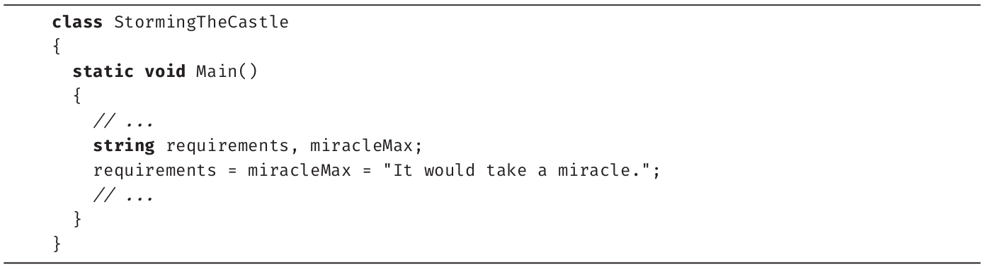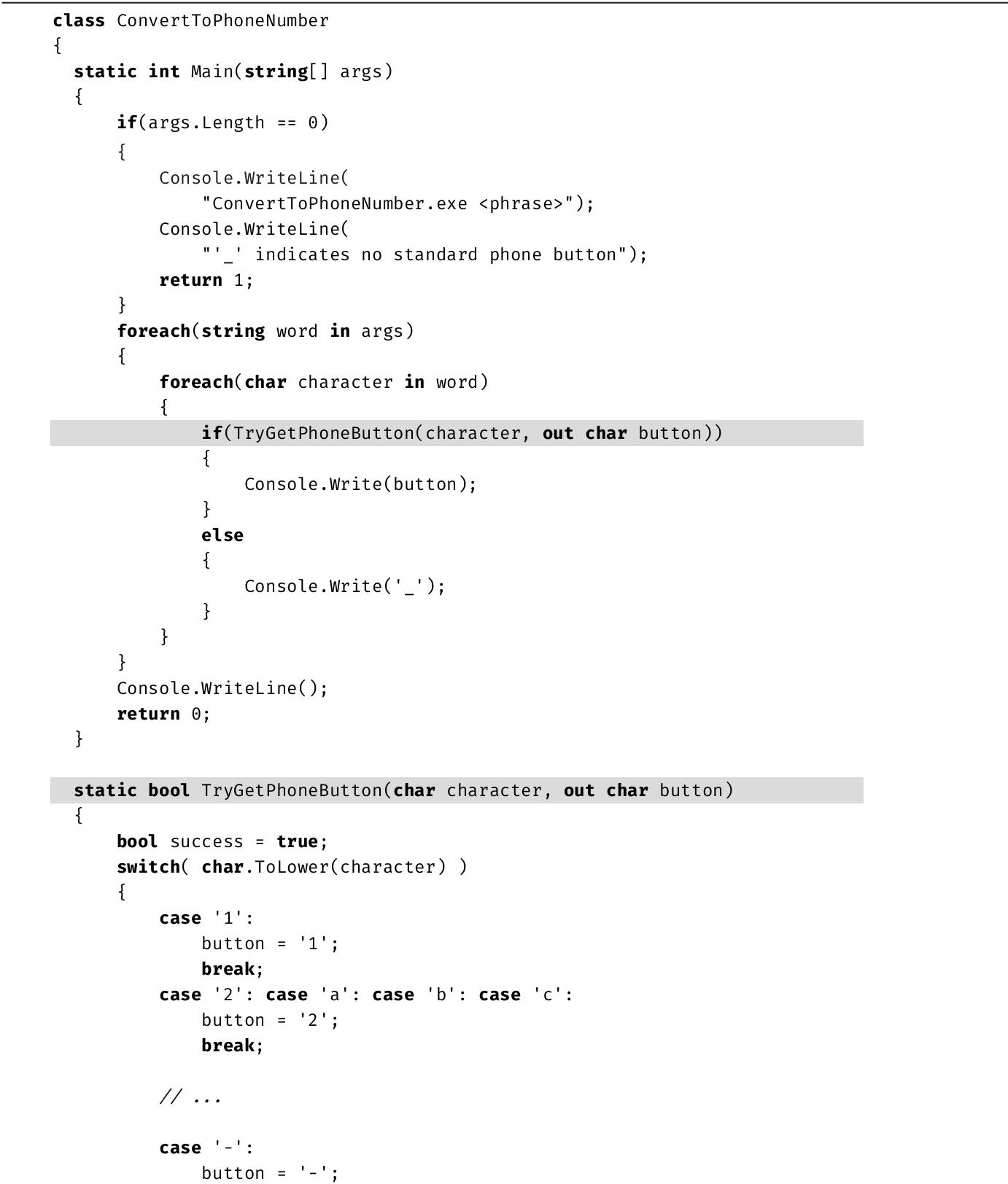 本书开始几章会指导你学习顺序编程结构。在这种编程结构中,语句按编写顺序执行。该结构的问题在于,随着需求的增加,复杂性也会指数级增加。为降低复杂性,将代码块转变成方法,从而产生了结构化编程模型。在这种模型中,可以从一个程序中的多个位置调用同一个代码块,而不需要复制代码。但即使有这种结构,程序还是会很快变得臃肿不堪,需要进一步抽象。所以,在此基础上人们又提出了面向对象编程的概念,这将在第6章中讨论。在此之后,你将继续学习其他编程方法,比如基于接口的编程和LINQ(以及它促使集合API发生的改变),并最终学习通过特性(attribute)进行初级的声明性编程(第18章)。
