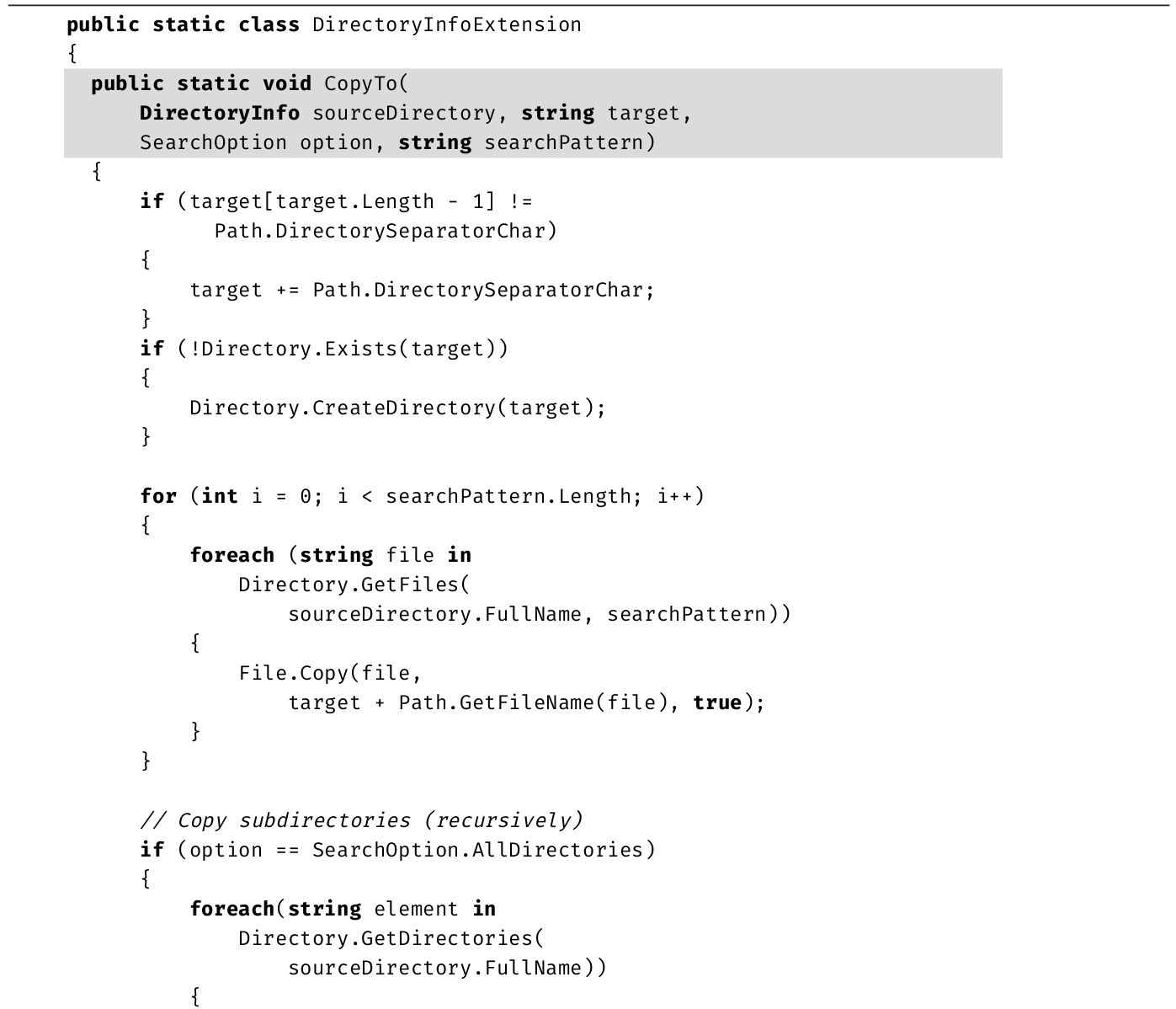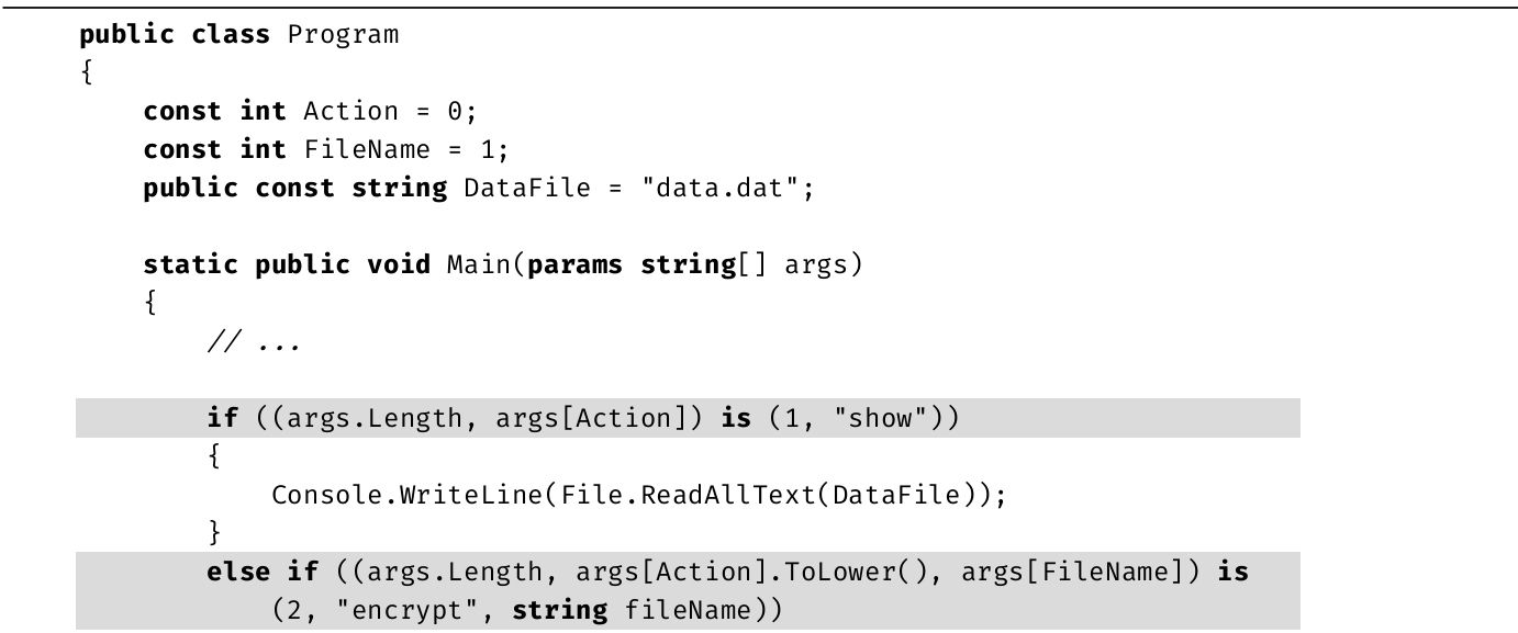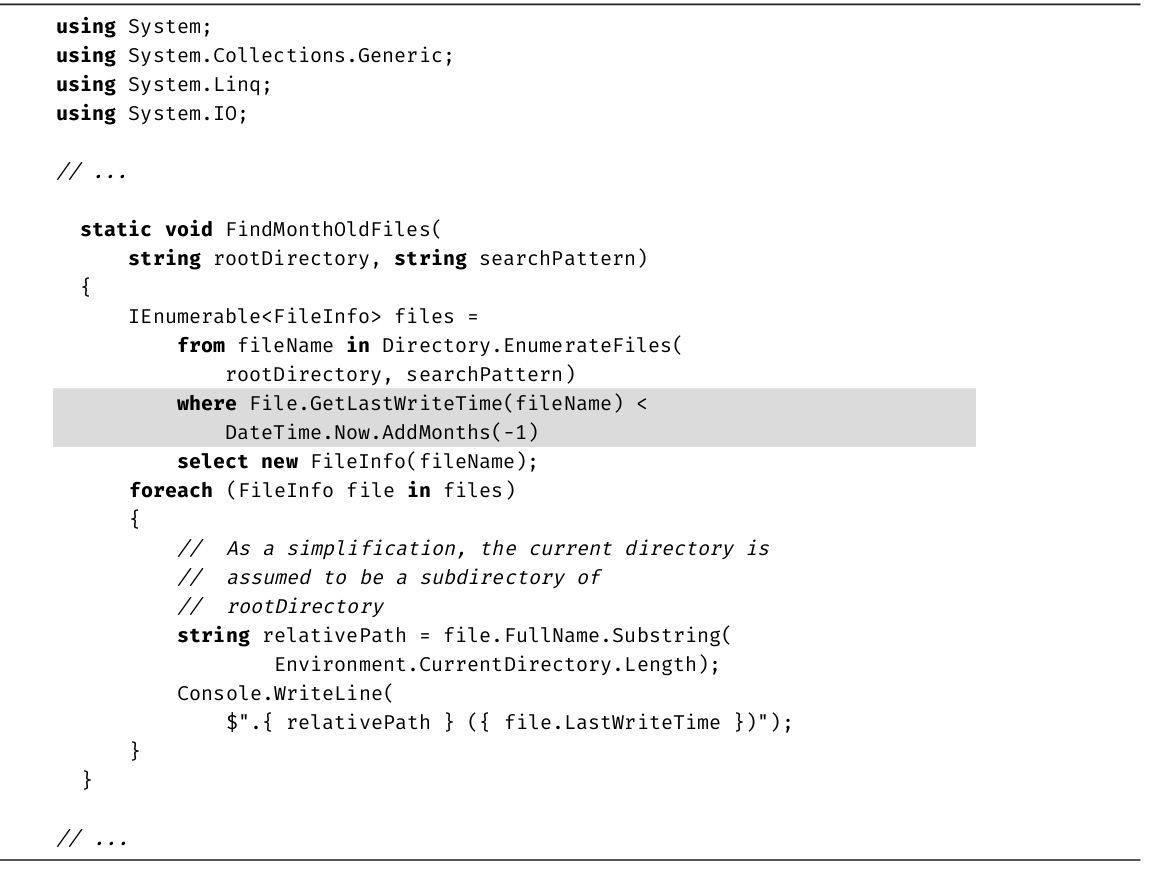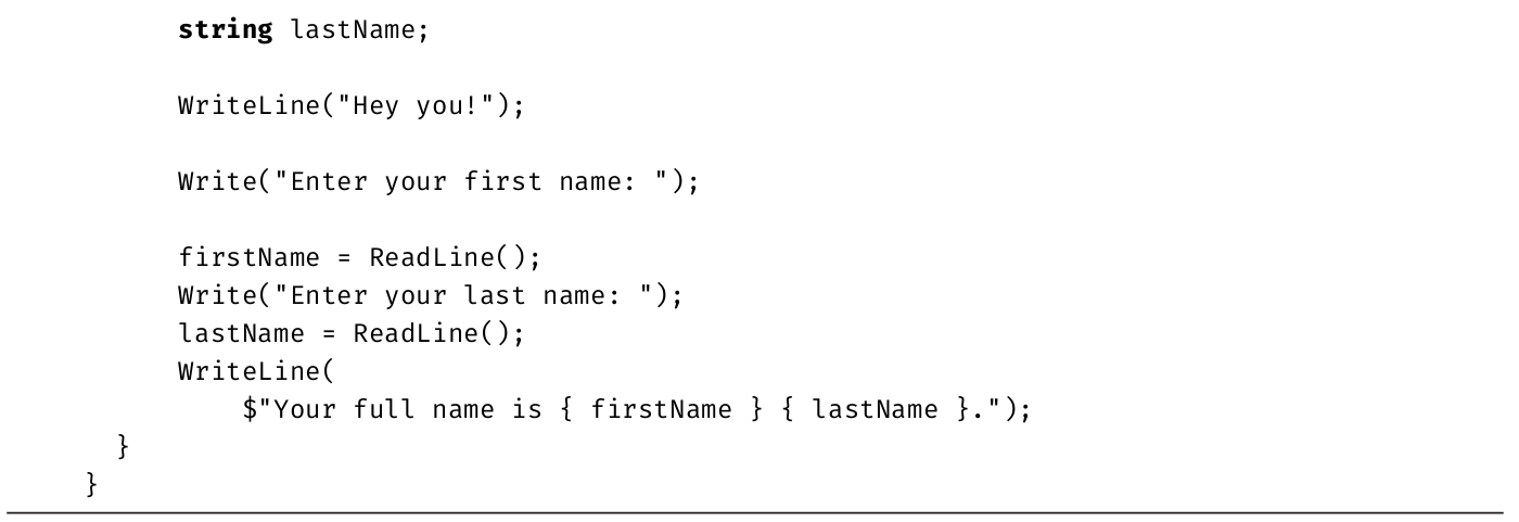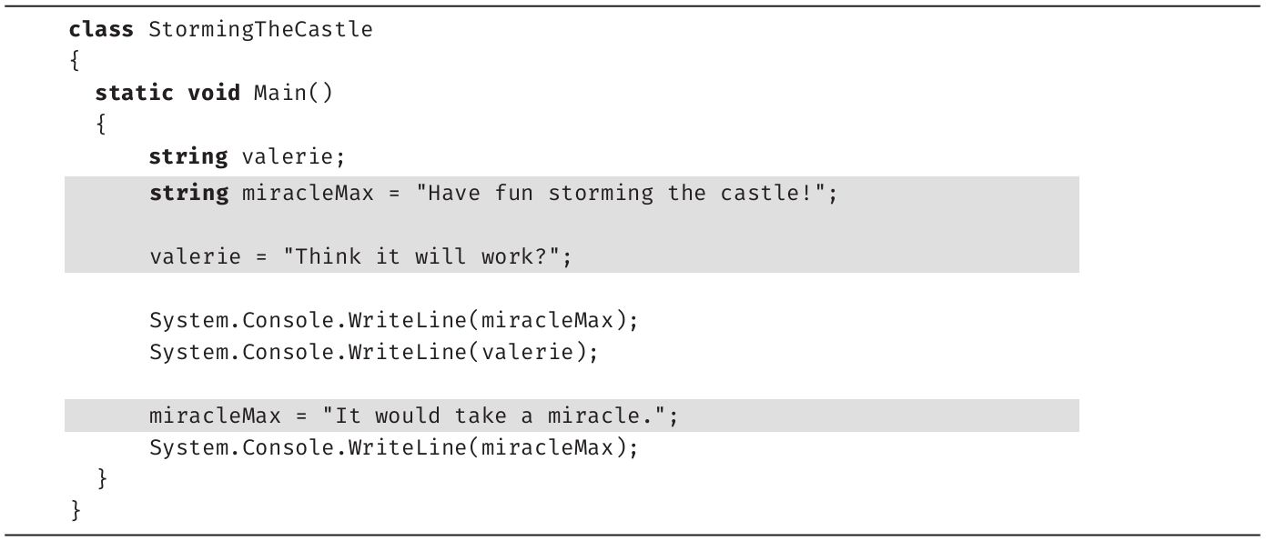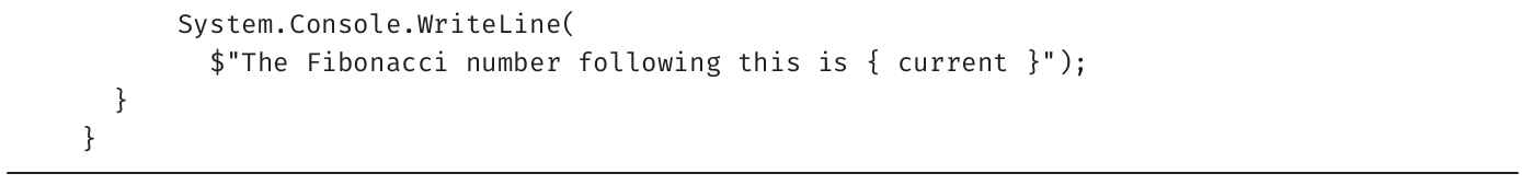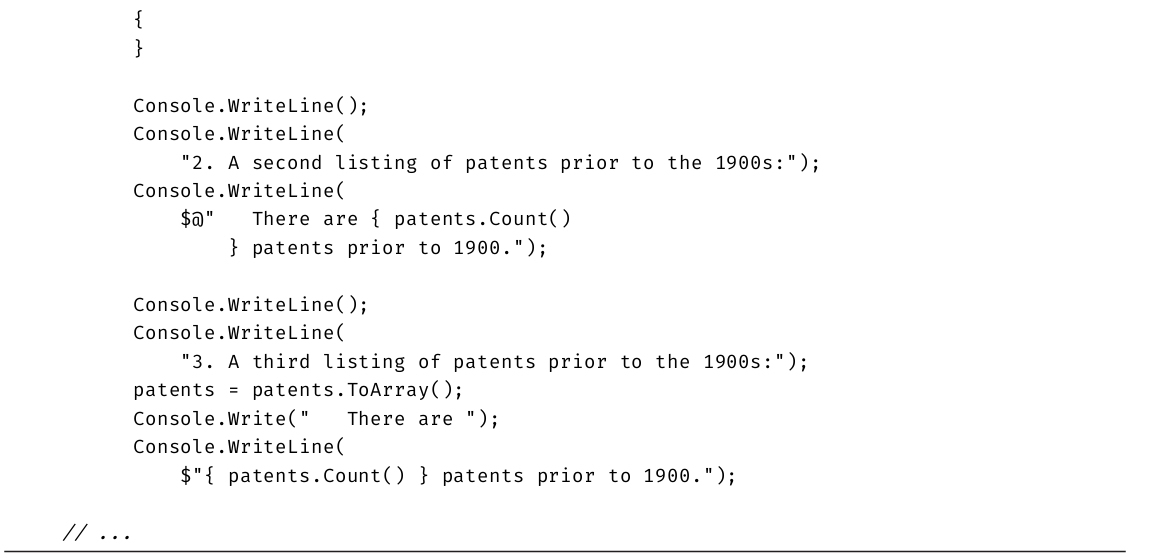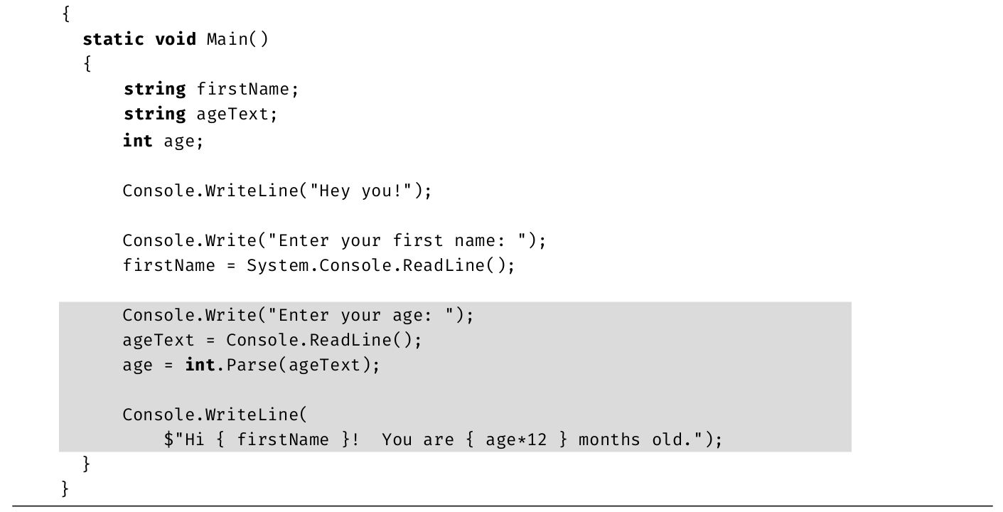 本书开始几章会指导你学习顺序编程结构。在这种编程结构中,语句按编写顺序执行。该结构的问题在于,随着需求的增加,复杂性也会指数级增加。为降低复杂性,将代码块转变成方法,从而产生了结构化编程模型。在这种模型中,可以从一个程序中的多个位置调用同一个代码块,而不需要复制代码。但即使有这种结构,程序还是会很快变得臃肿不堪,需要进一步抽象。所以,在此基础上人们又提出了面向对象编程的概念,这将在第6章中讨论。在此之后,你将继续学习其他编程方法,比如基于接口的编程和LINQ(以及它促使集合API发生的改变),并最终学习通过特性(attribute)进行初级的声明性编程(第18章)。
