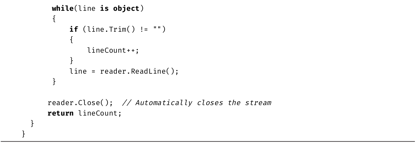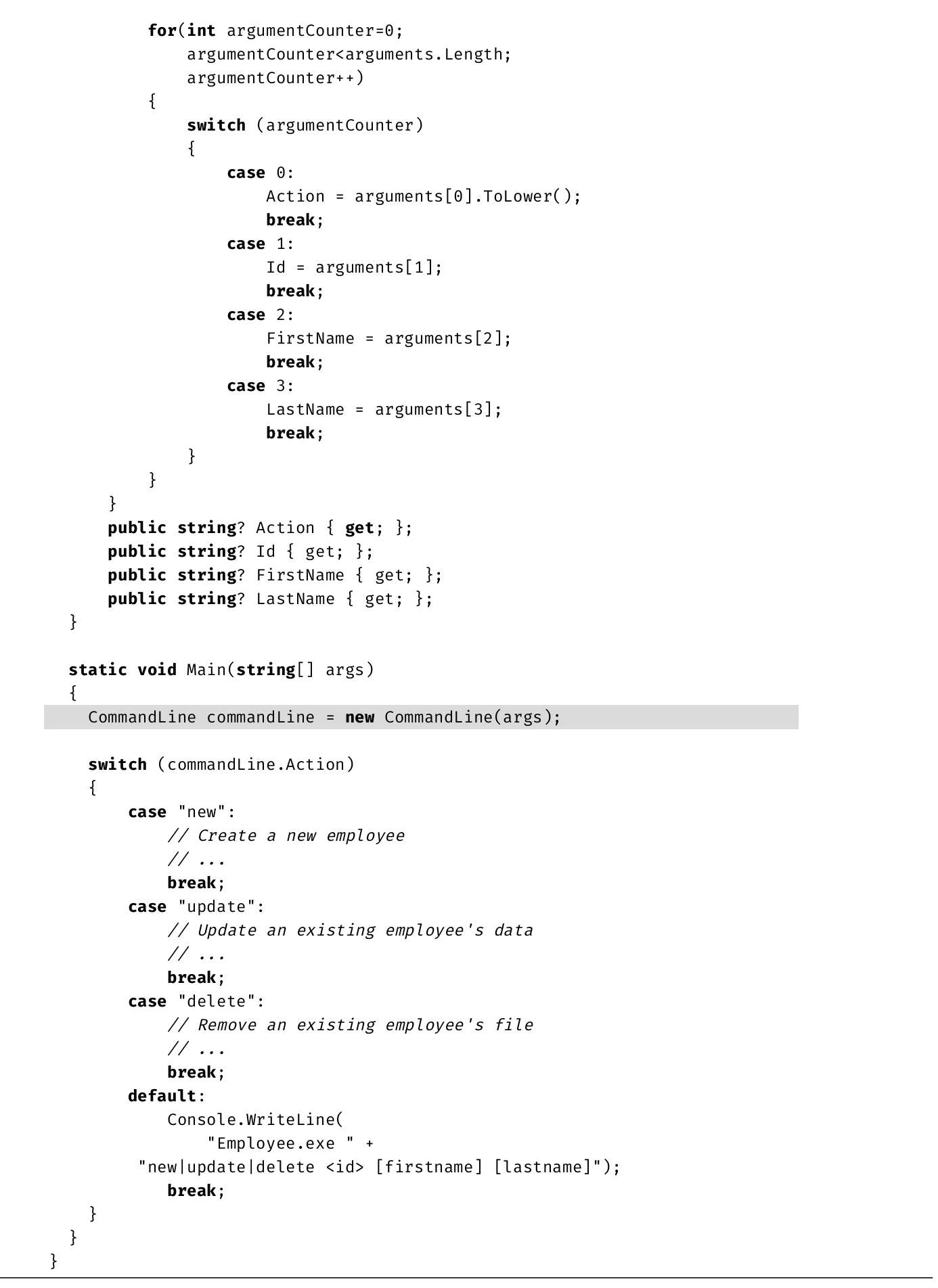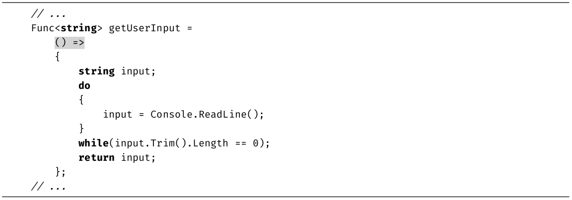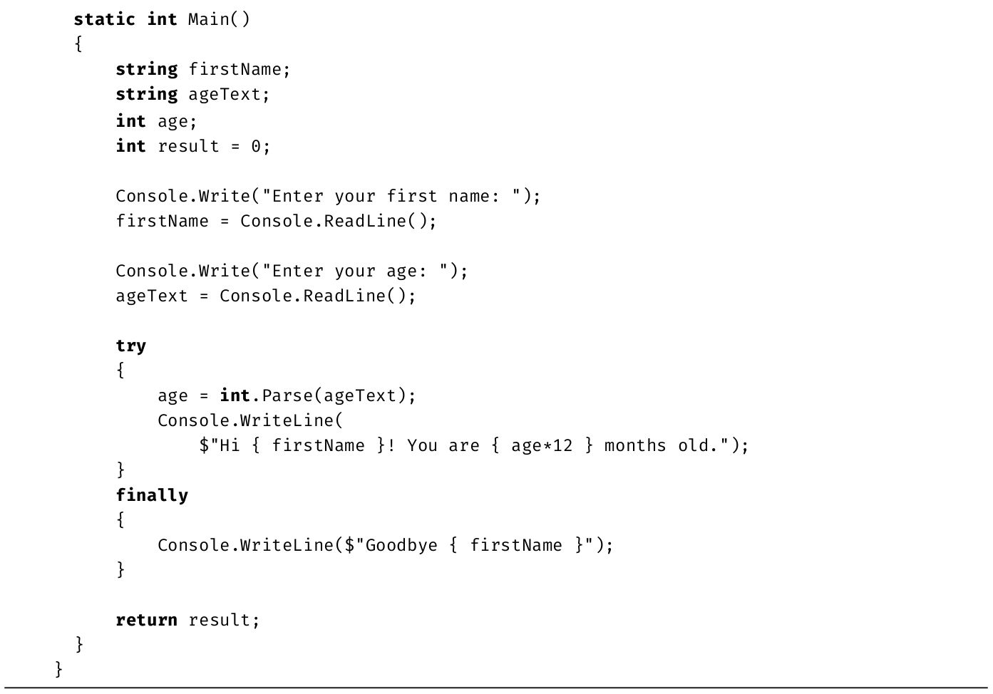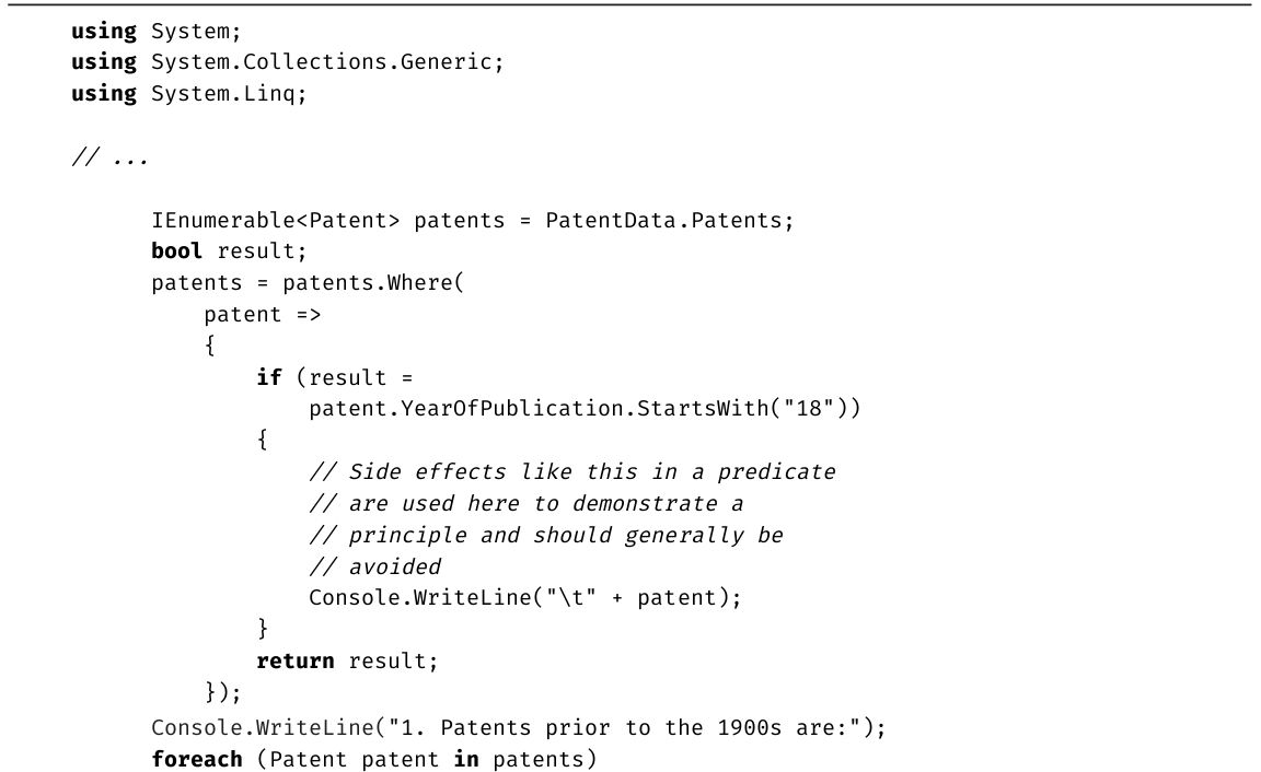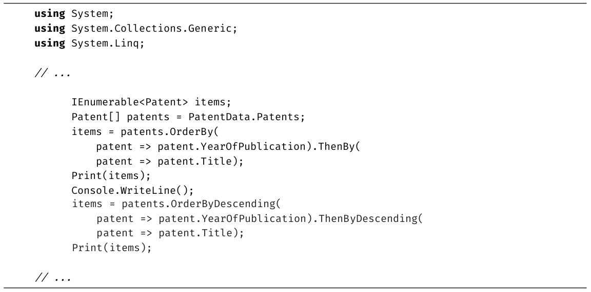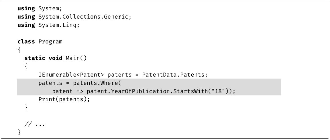 本书开始几章会指导你学习顺序编程结构。在这种编程结构中,语句按编写顺序执行。该结构的问题在于,随着需求的增加,复杂性也会指数级增加。为降低复杂性,将代码块转变成方法,从而产生了结构化编程模型。在这种模型中,可以从一个程序中的多个位置调用同一个代码块,而不需要复制代码。但即使有这种结构,程序还是会很快变得臃肿不堪,需要进一步抽象。所以,在此基础上人们又提出了面向对象编程的概念,这将在第6章中讨论。在此之后,你将继续学习其他编程方法,比如基于接口的编程和LINQ(以及它促使集合API发生的改变),并最终学习通过特性(attribute)进行初级的声明性编程(第18章)。