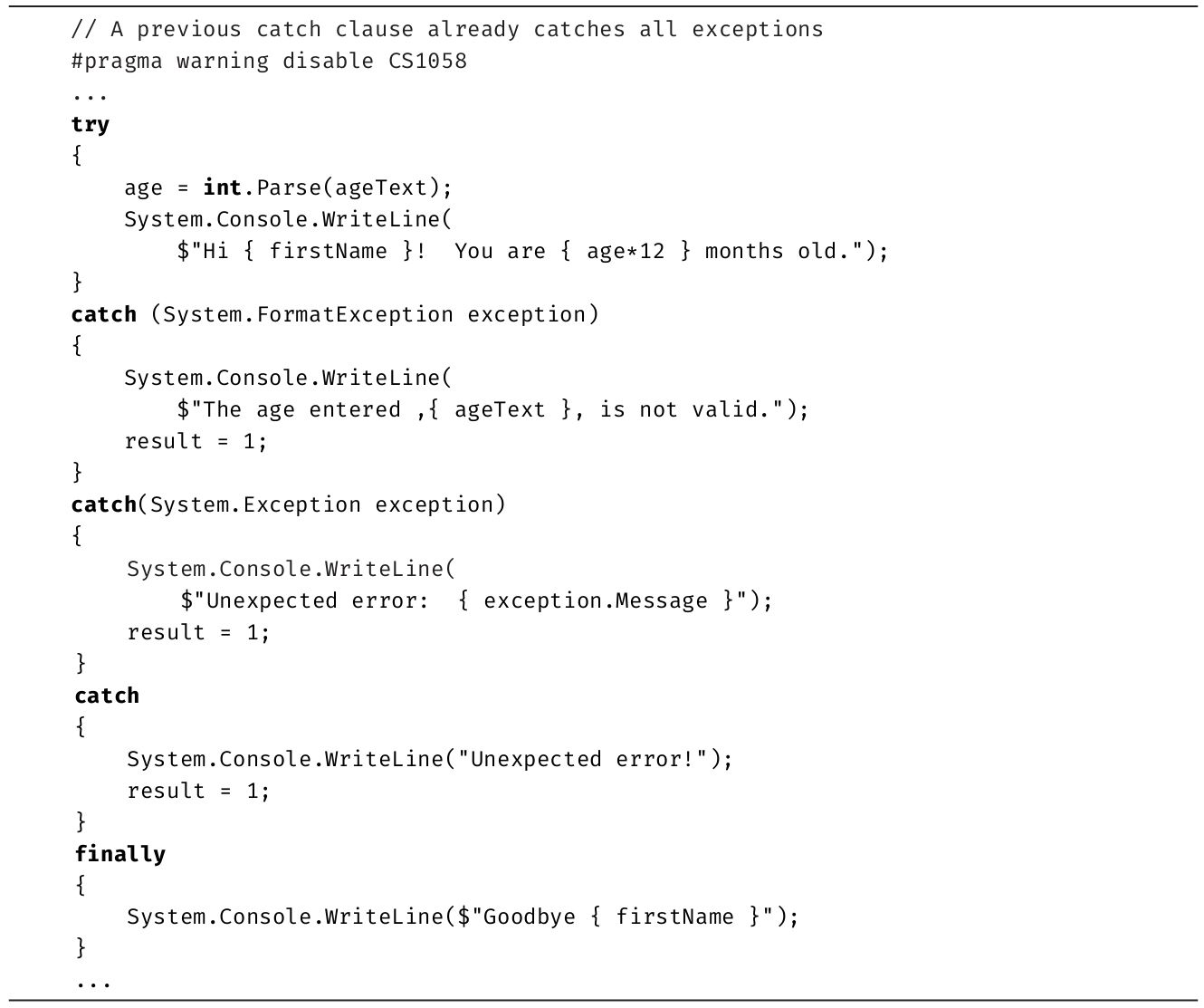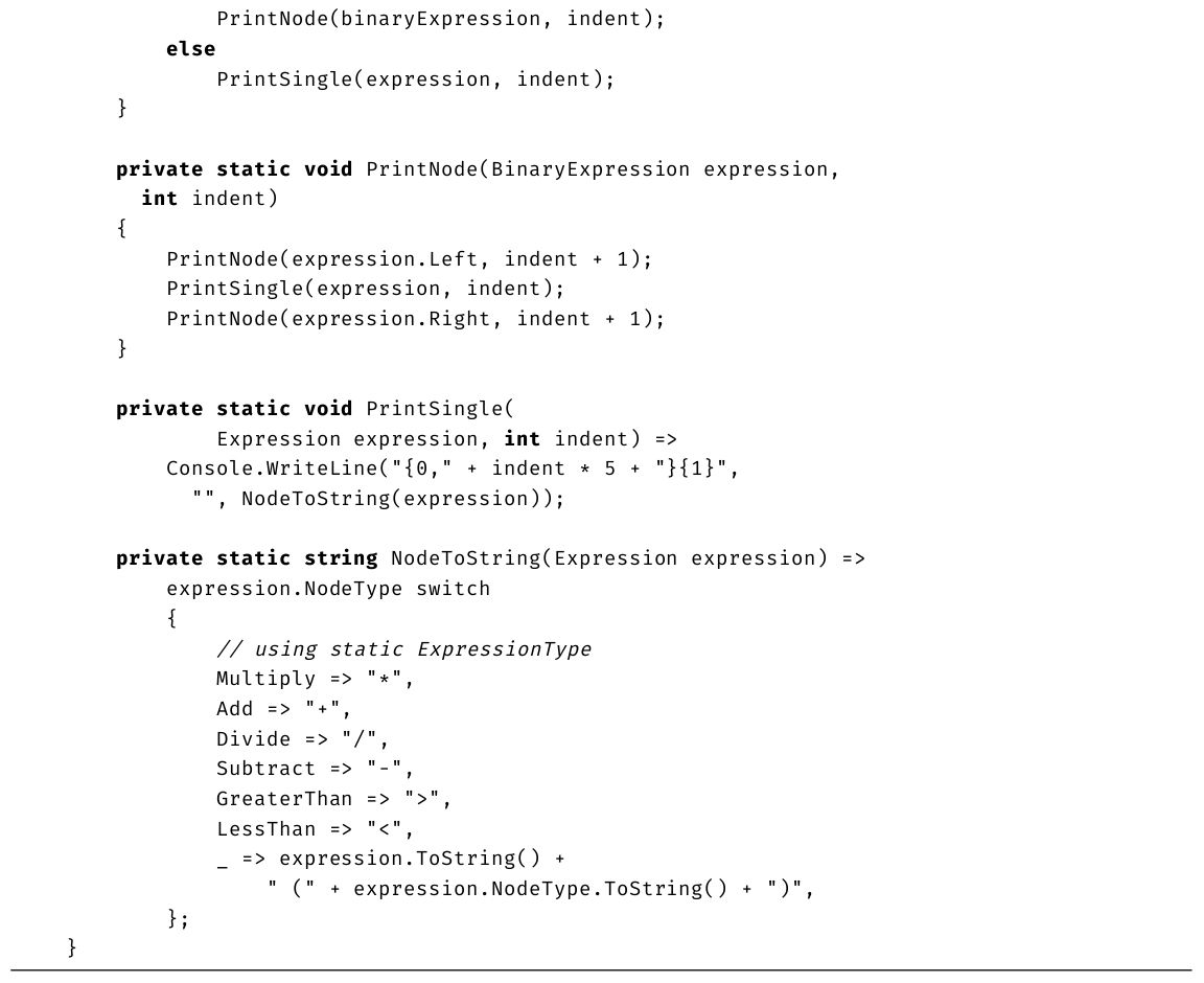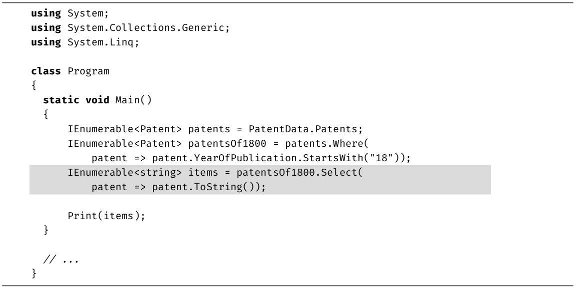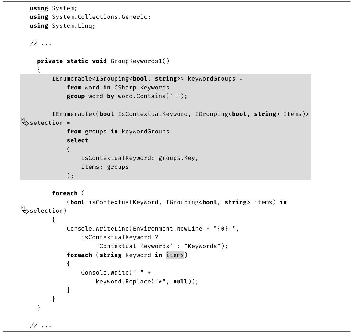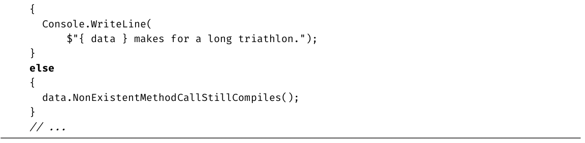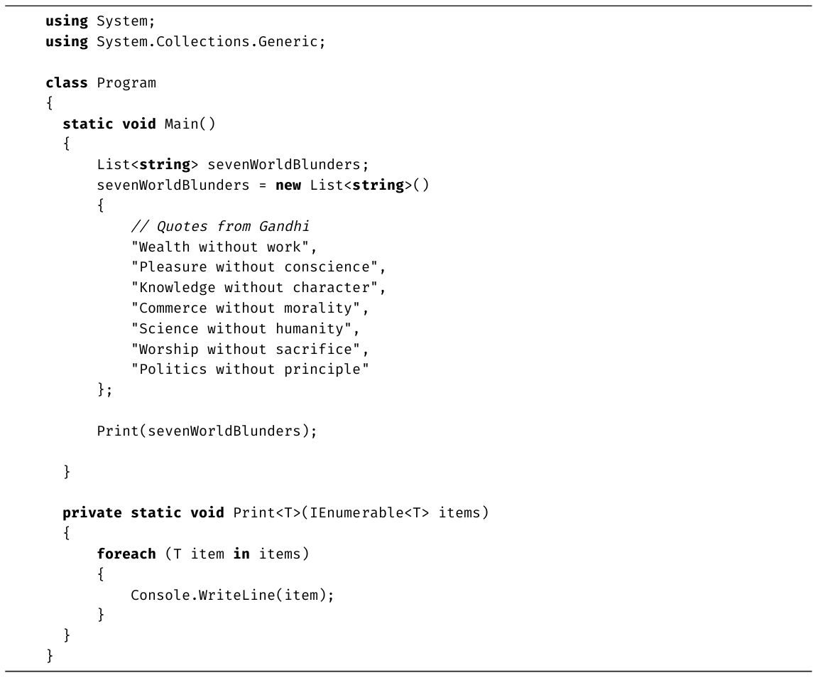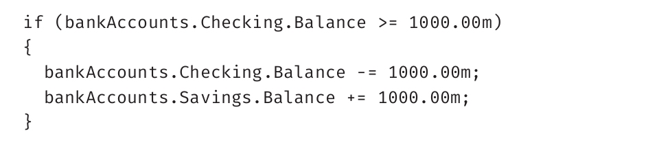 本书开始几章会指导你学习顺序编程结构。在这种编程结构中,语句按编写顺序执行。该结构的问题在于,随着需求的增加,复杂性也会指数级增加。为降低复杂性,将代码块转变成方法,从而产生了结构化编程模型。在这种模型中,可以从一个程序中的多个位置调用同一个代码块,而不需要复制代码。但即使有这种结构,程序还是会很快变得臃肿不堪,需要进一步抽象。所以,在此基础上人们又提出了面向对象编程的概念,这将在第6章中讨论。在此之后,你将继续学习其他编程方法,比如基于接口的编程和LINQ(以及它促使集合API发生的改变),并最终学习通过特性(attribute)进行初级的声明性编程(第18章)。