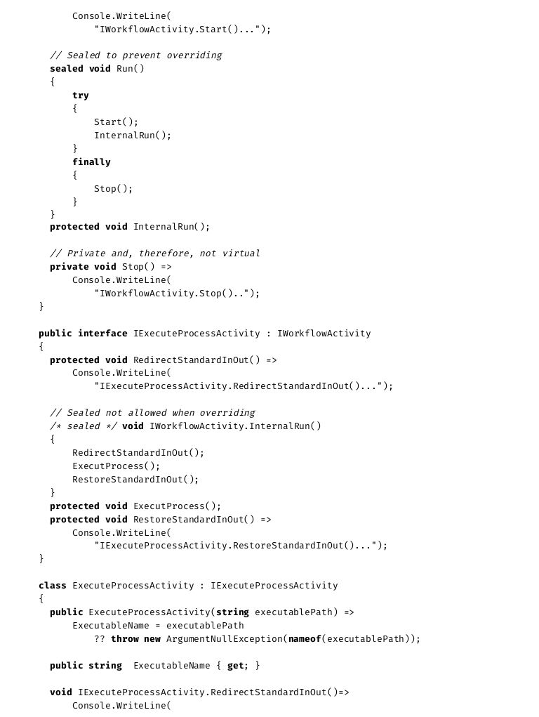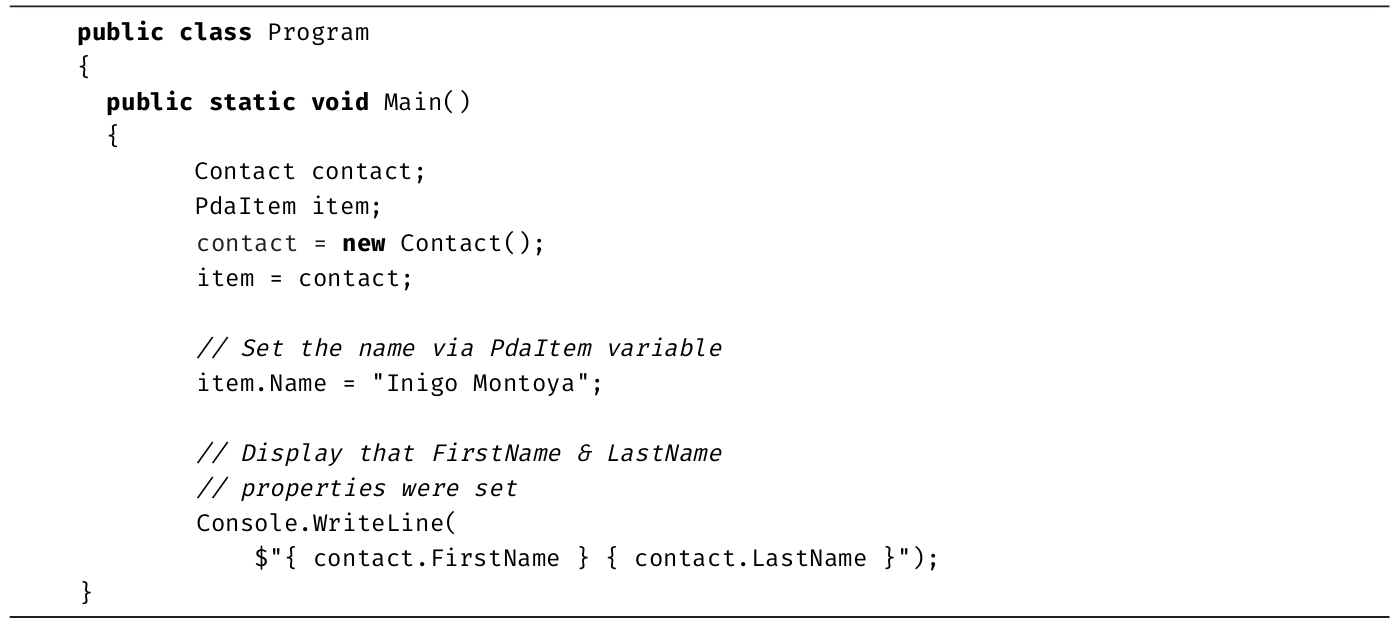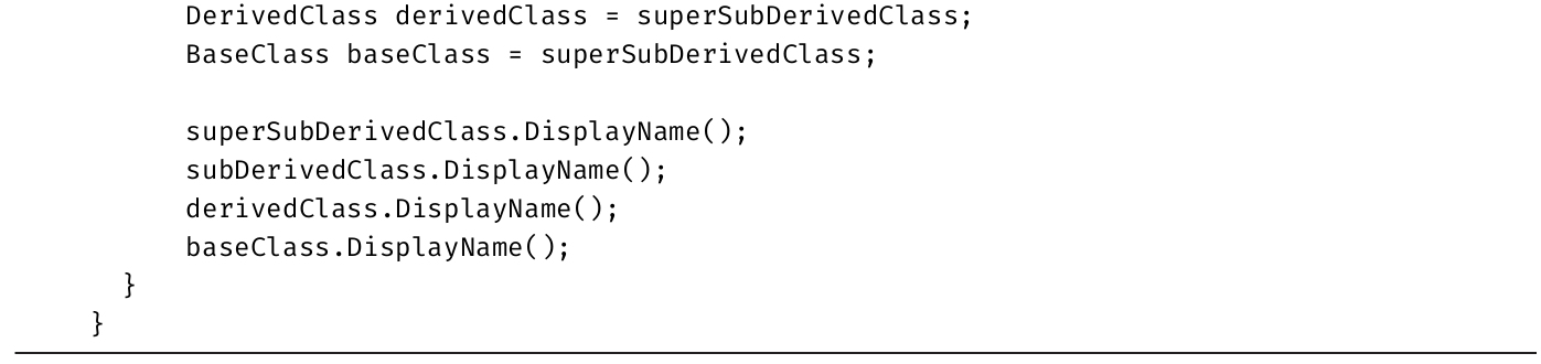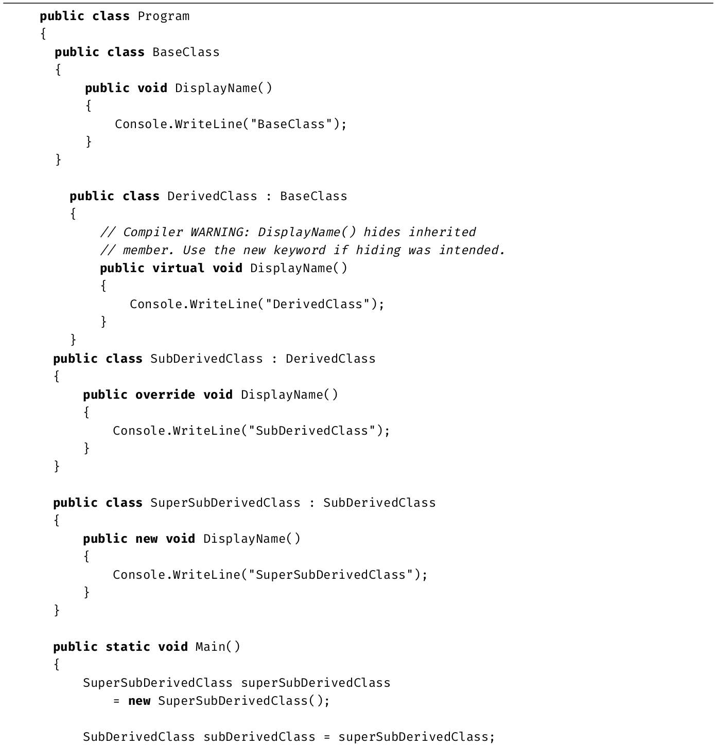 ·第7章 :继承是许多开发者的基本编程手段,C#更是提供了一些独特构造,比如new修饰符。本章讨论继承语法的细节,其中包括重写(overriding)。