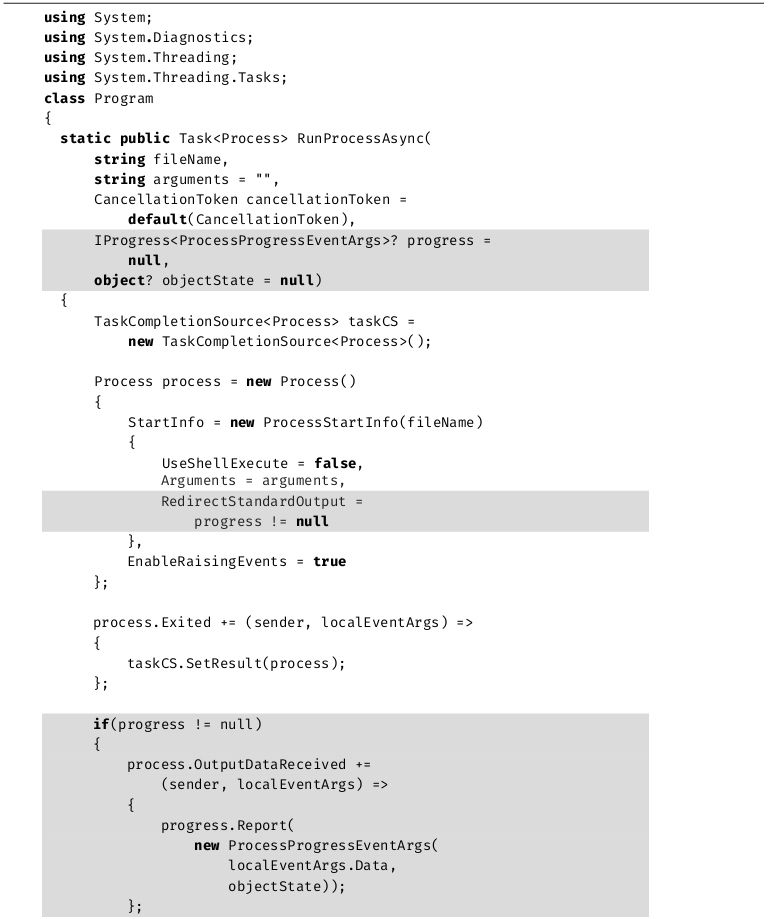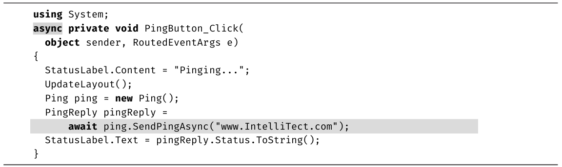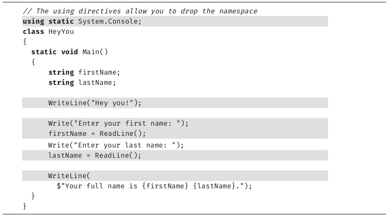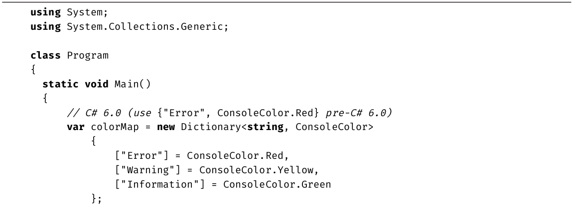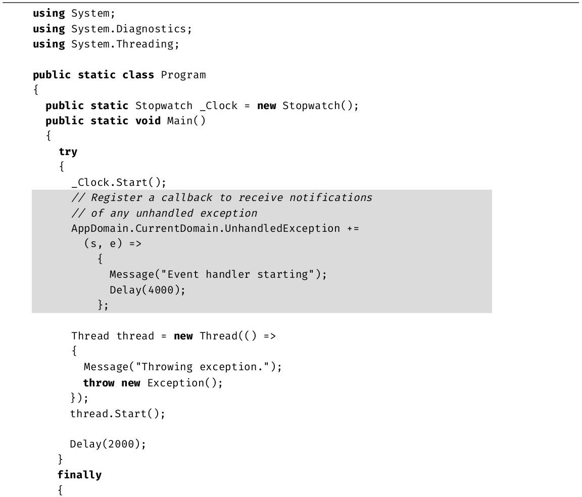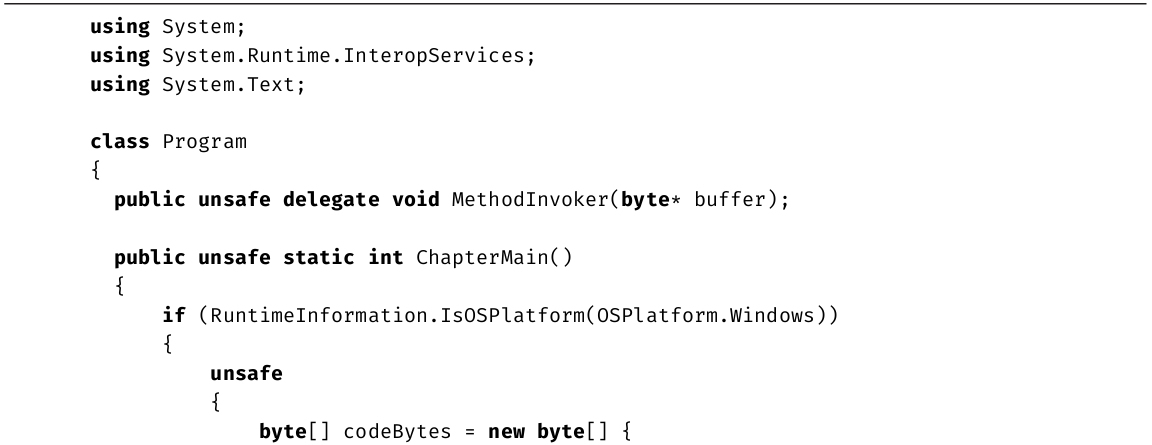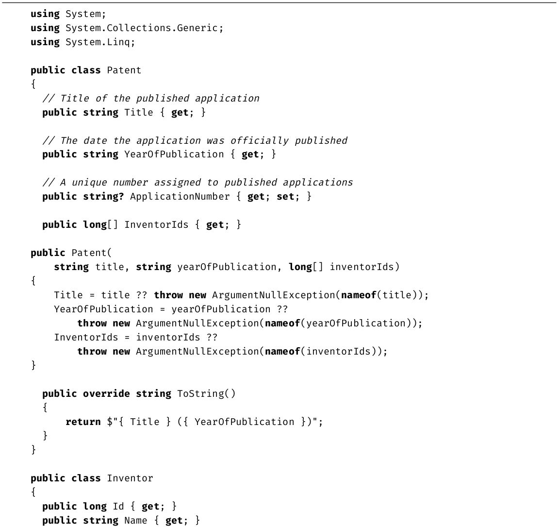 虽然我也可以在书中提供完整代码以方便复制,但这样会分散大家的注意力。因此,你需要在自己的程序中修改示例代码。书中的代码主要省略了错误检查,比如异常处理。另外,代码没有显式包含using System语句,所有例子都需要该语句。