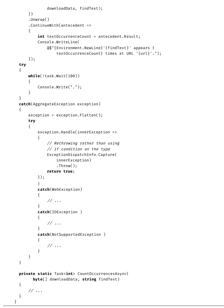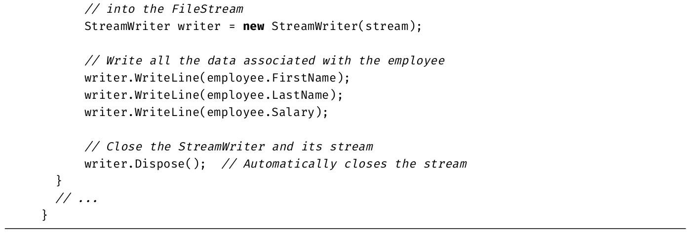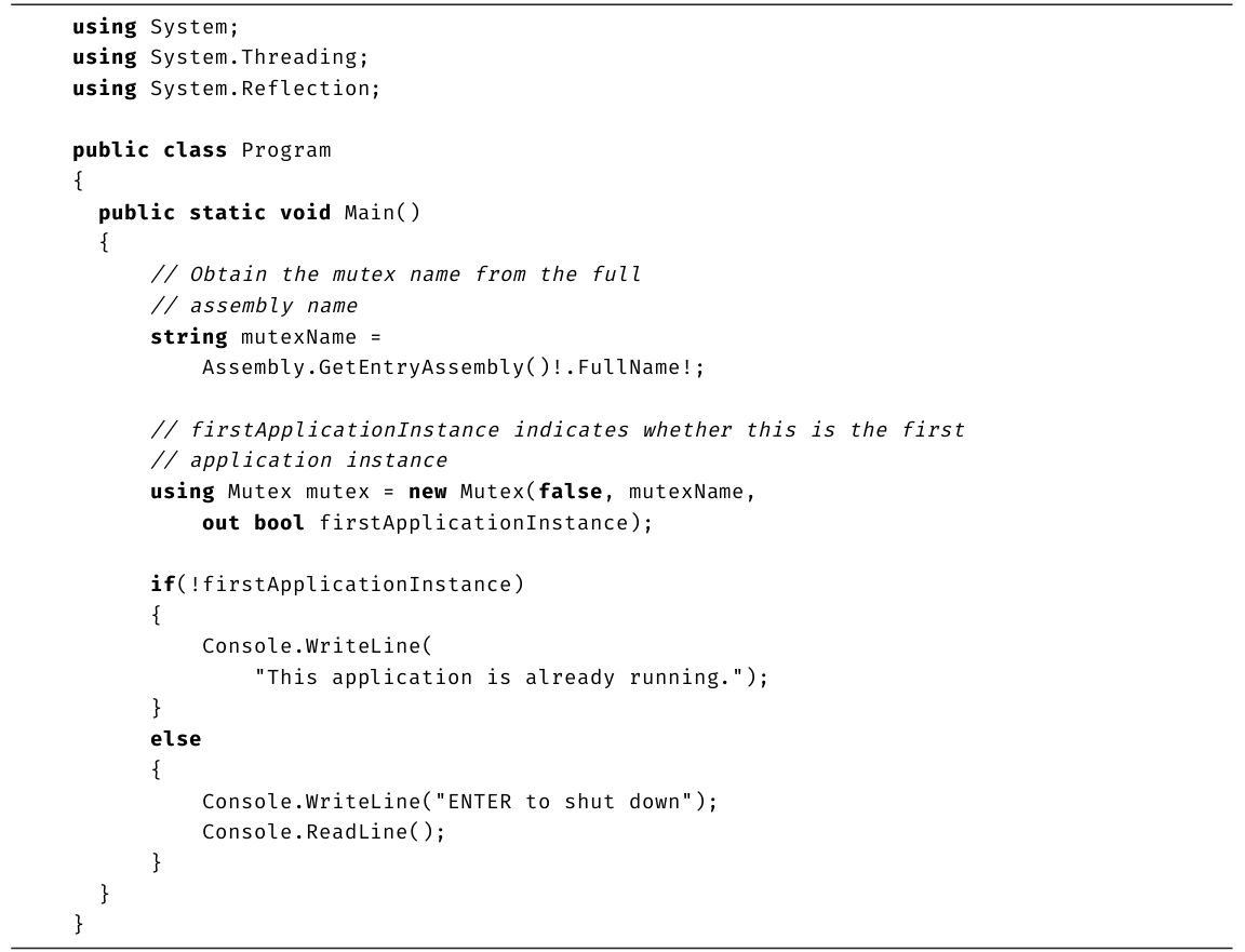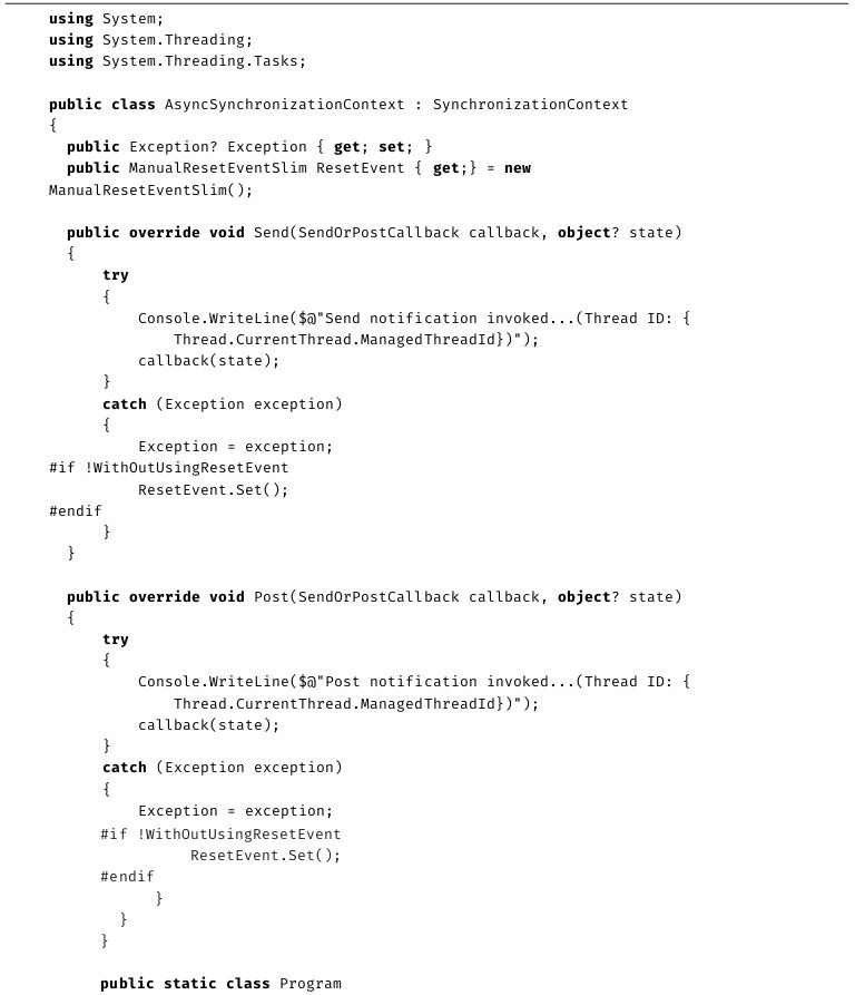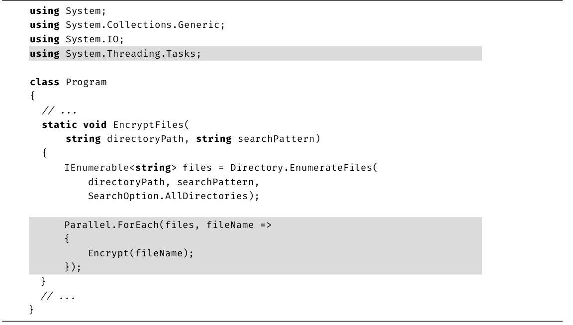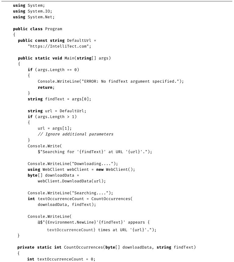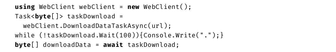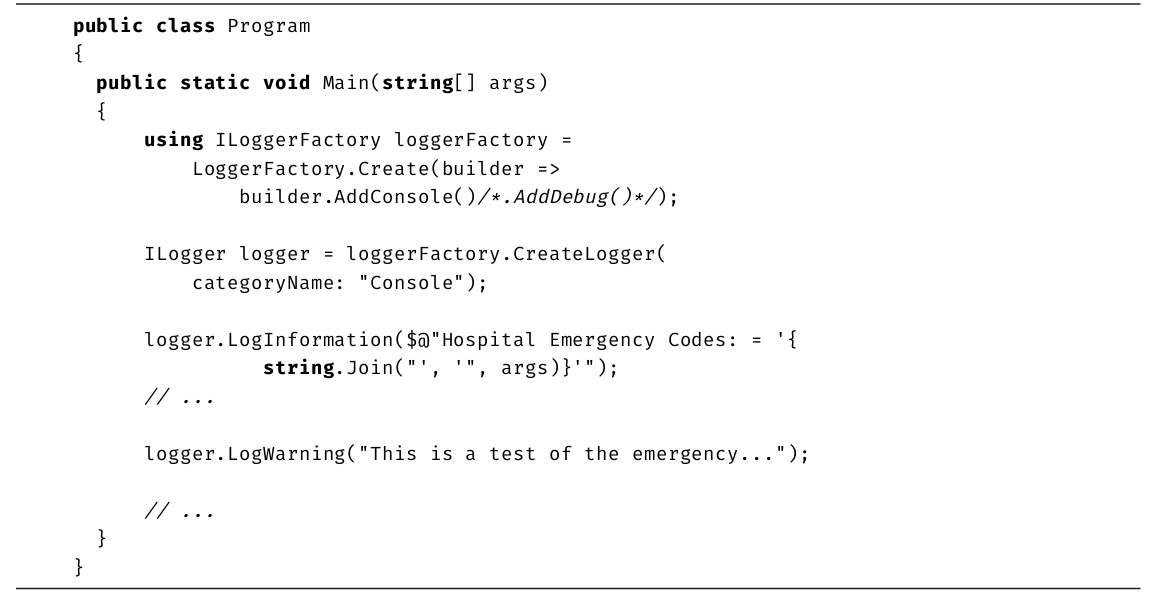 虽然我也可以在书中提供完整代码以方便复制,但这样会分散大家的注意力。因此,你需要在自己的程序中修改示例代码。书中的代码主要省略了错误检查,比如异常处理。另外,代码没有显式包含using System语句,所有例子都需要该语句。