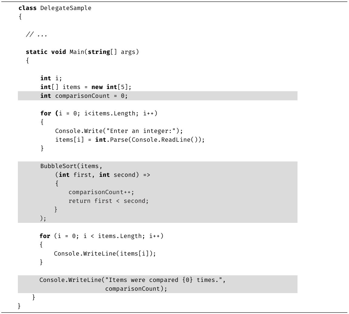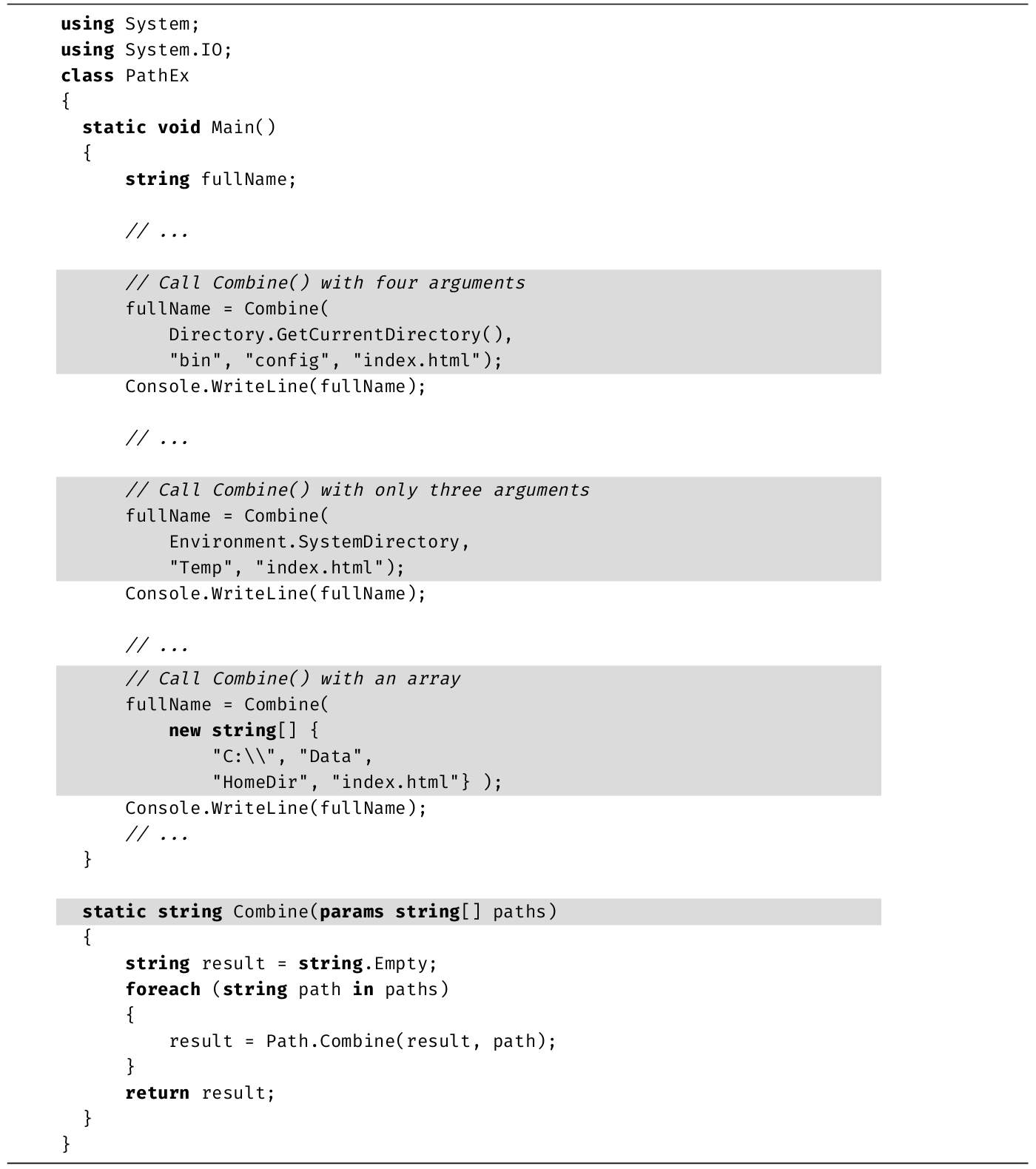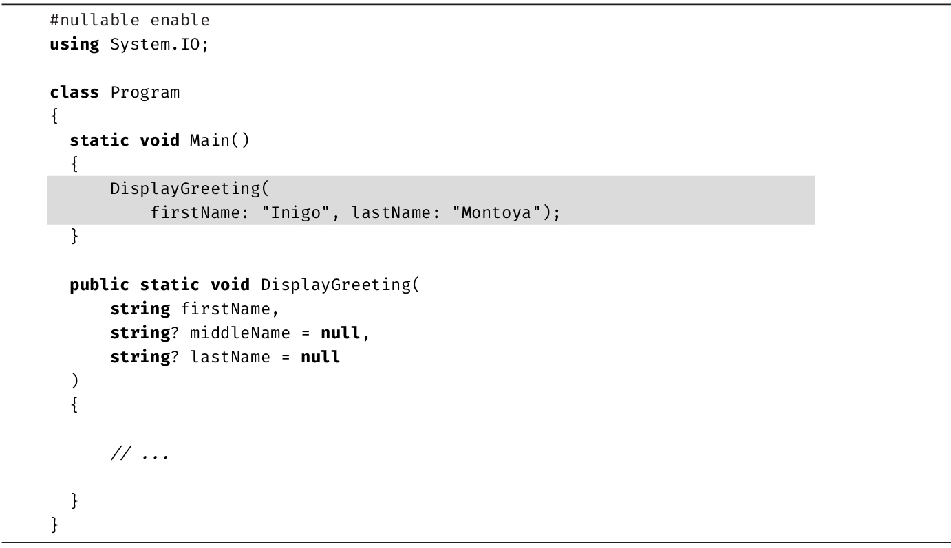 ·第5章 :本章讨论方法及其参数的细节,其中包括通过参数来传值、传引用和通过out参数返回数据。C# 4.0新增了默认参数,本章将解释如何使用。