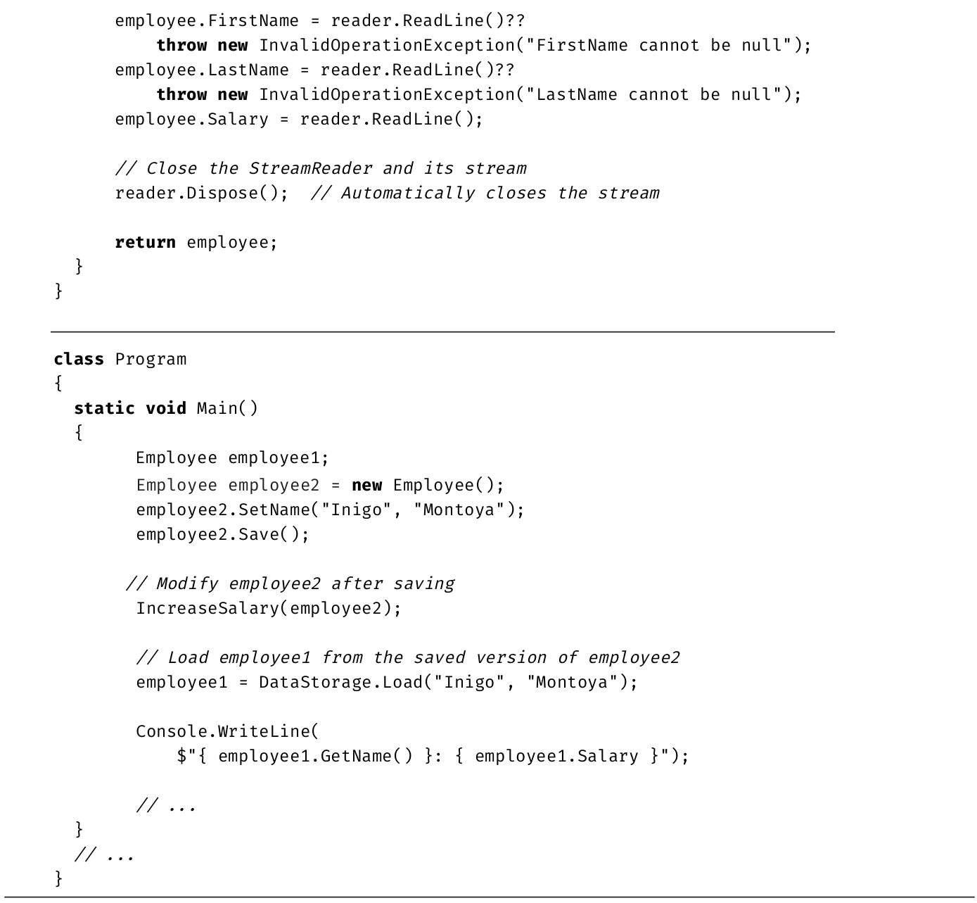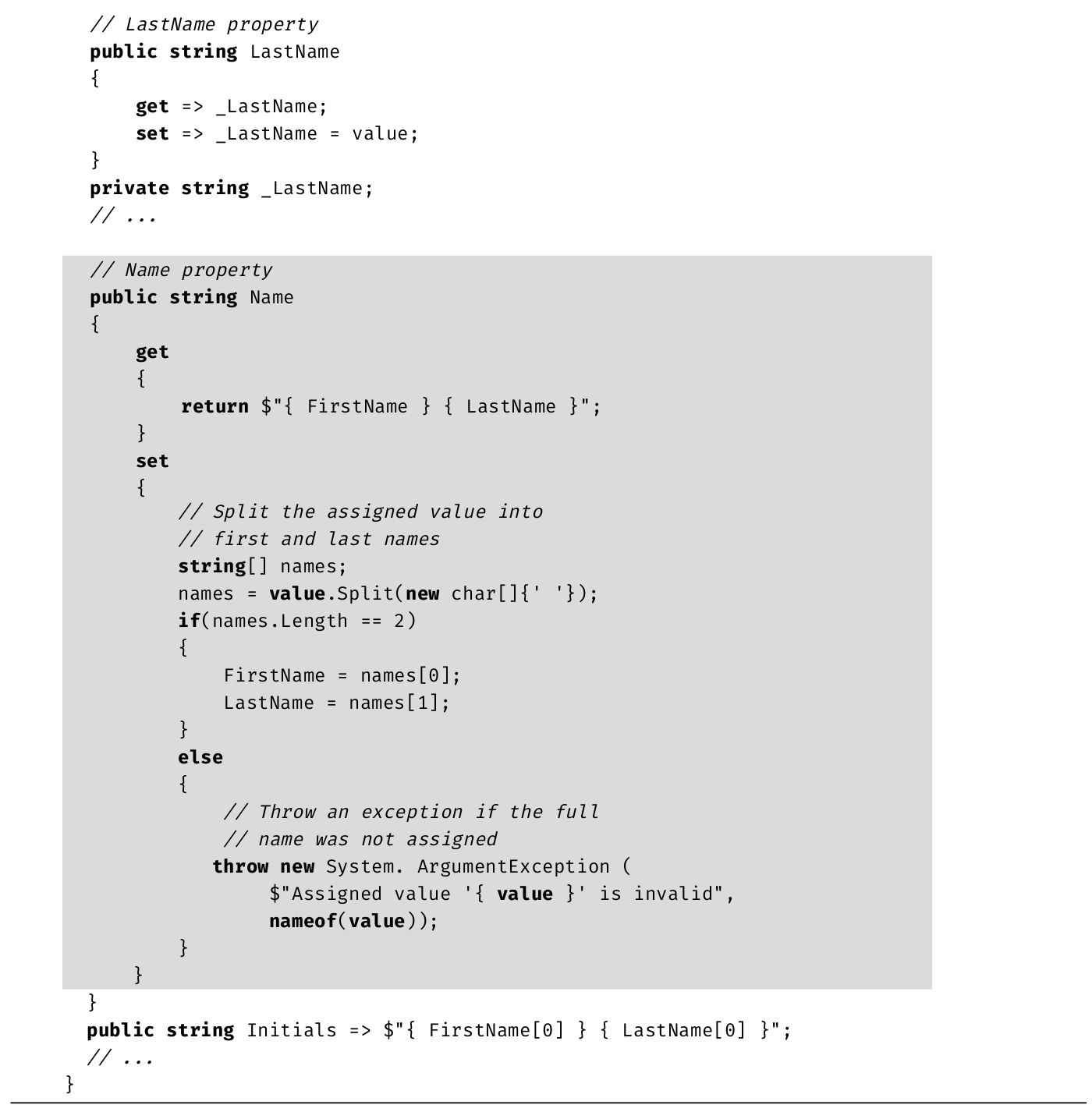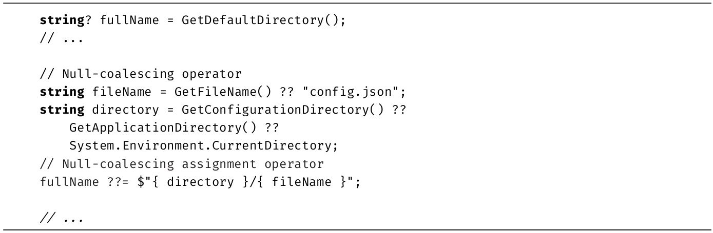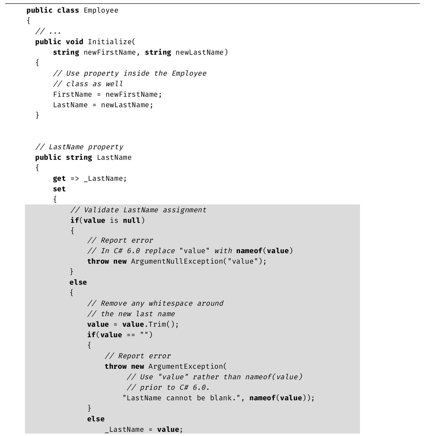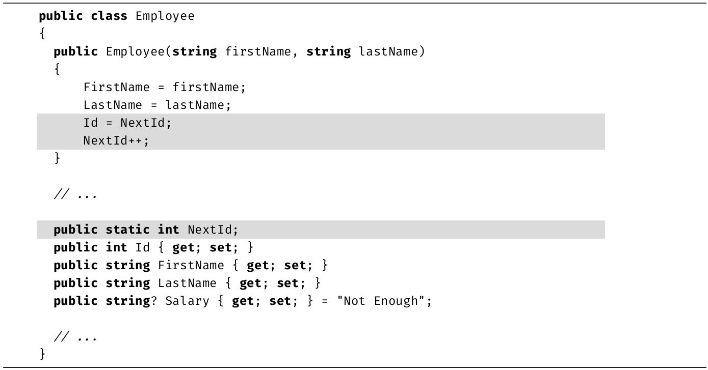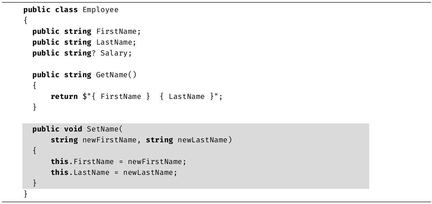 ·第6章 :前面已学过类的基本构成元素,本章合并这些构造,以获得具有完整功能的类型。类是面向对象技术的核心,它定义了对象模板。本章还包括C# 8.0中新引入的可空属性。
