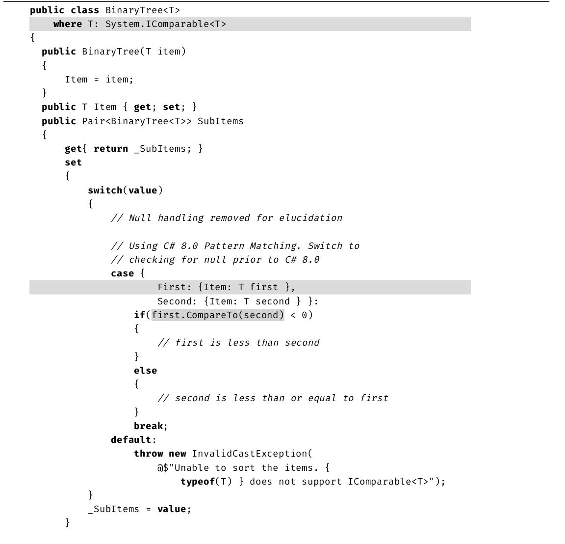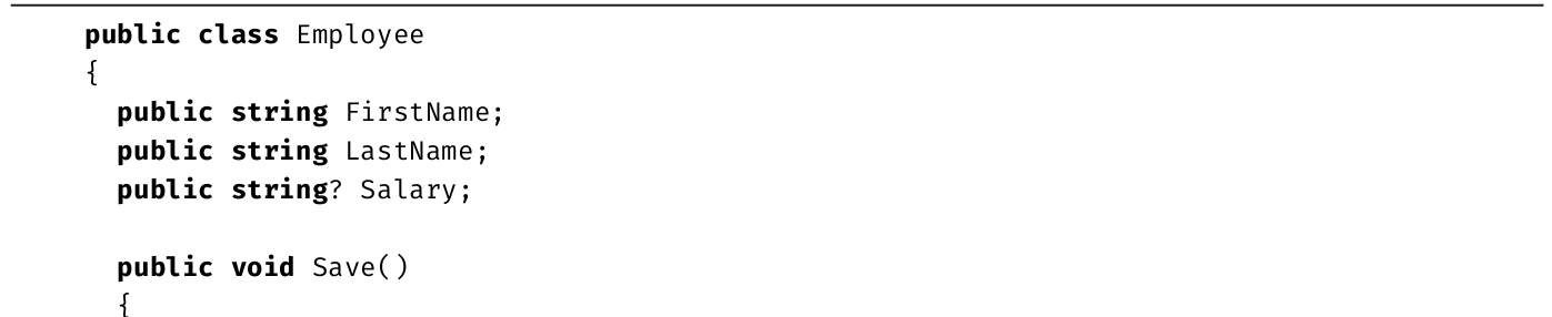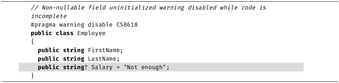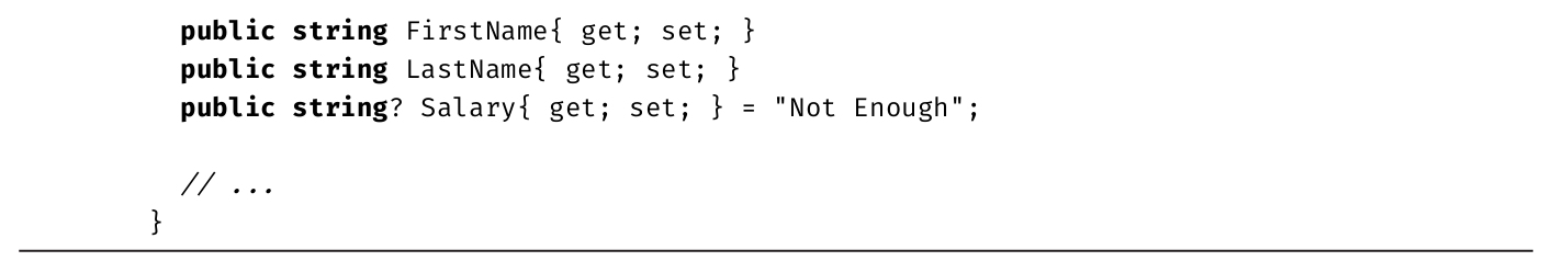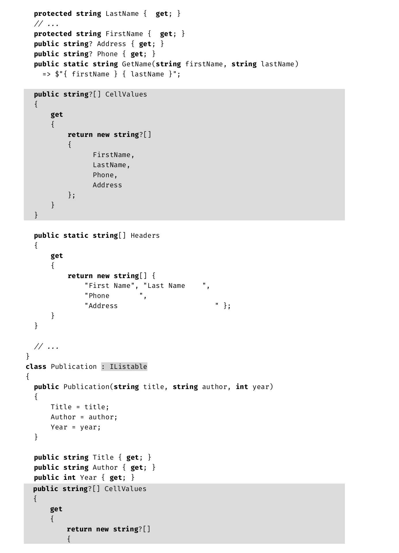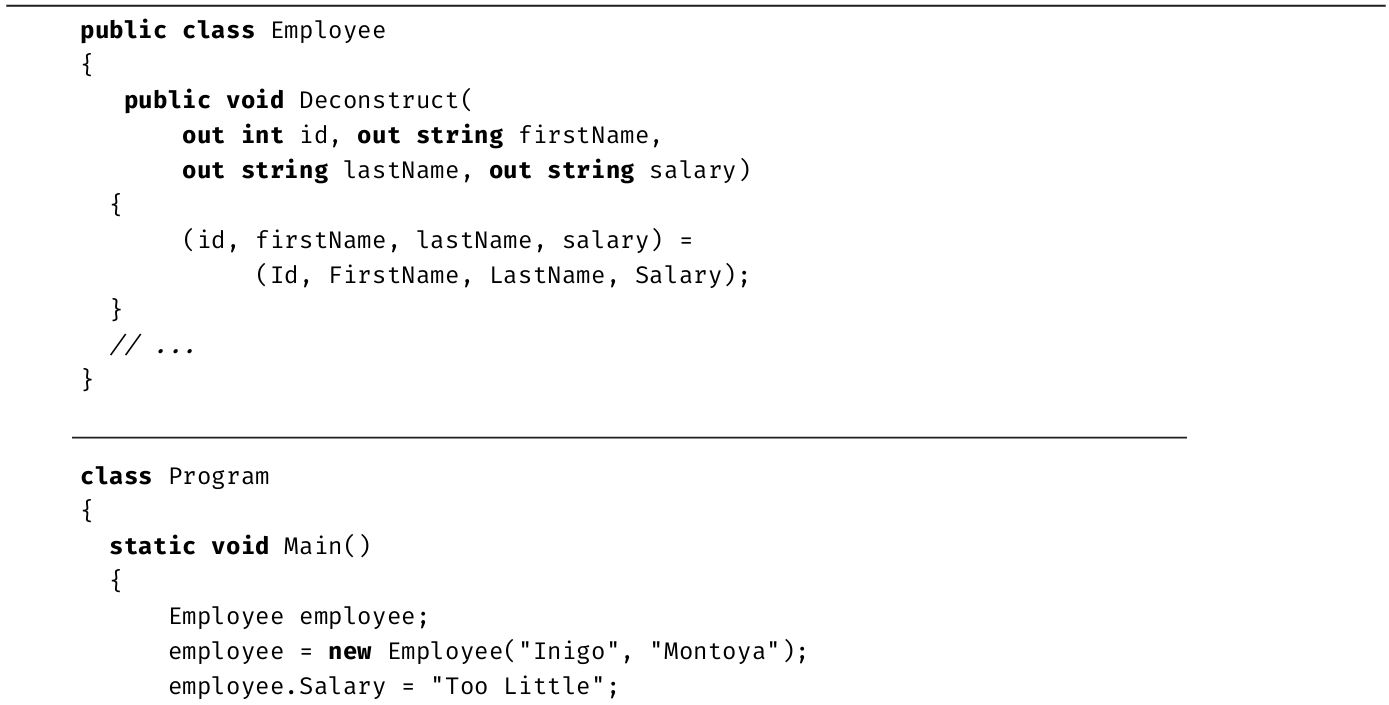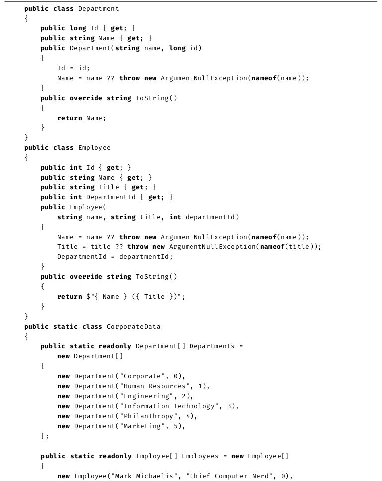 ·第6章 :前面已学过类的基本构成元素,本章合并这些构造,以获得具有完整功能的类型。类是面向对象技术的核心,它定义了对象模板。本章还包括C# 8.0中新引入的可空属性。