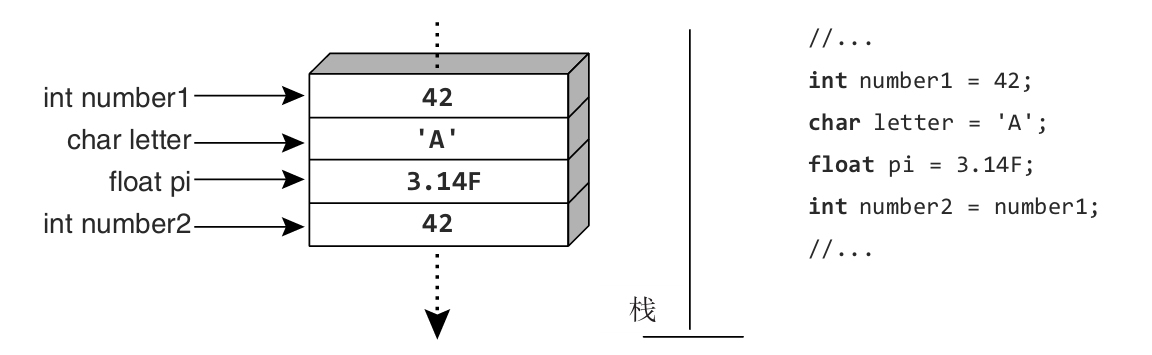 ·值 (Value)是用于表示基本类型(比如整数和字符)以及以结构的形式提供的更复杂数据的位模式(bit pattern)。每种值类型都对应一个单独的类型定义,这个单独的类型定义不存储在位本身中。单独的类型定义是指提供了值中每一位的含义,并对值所支持的操作进行了说明的类型定义。