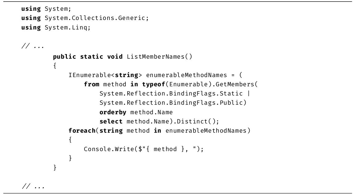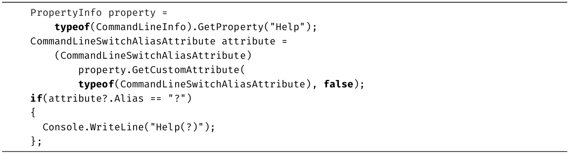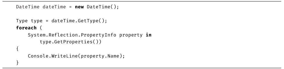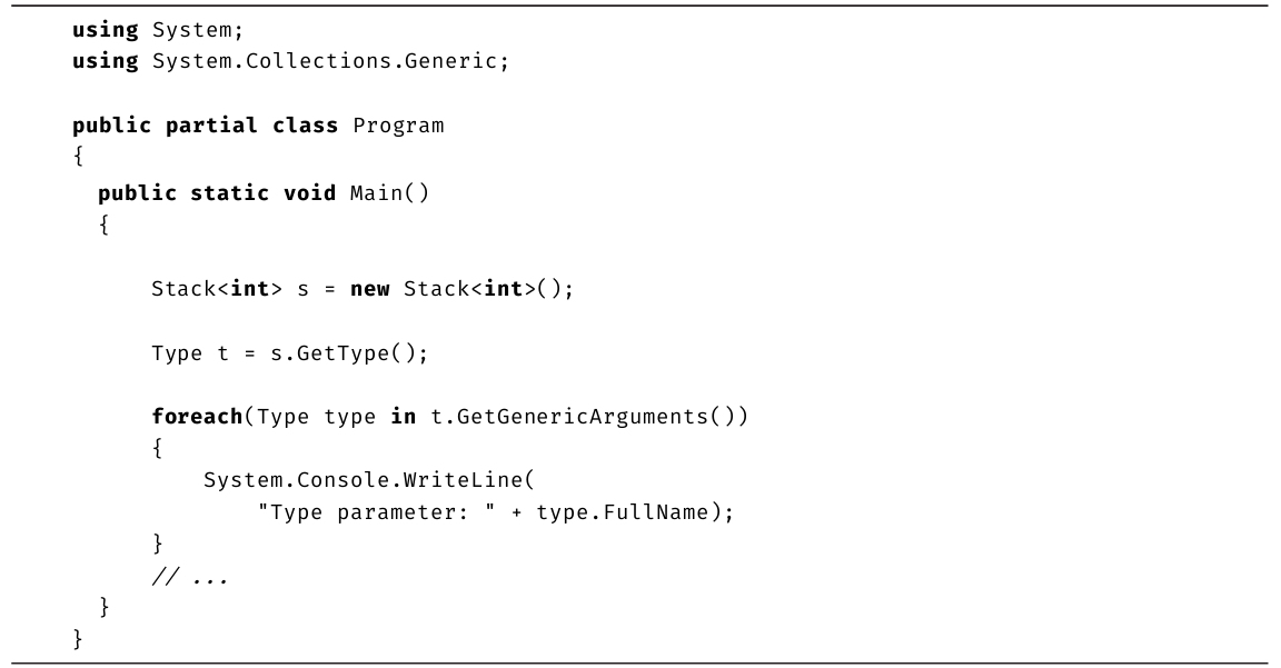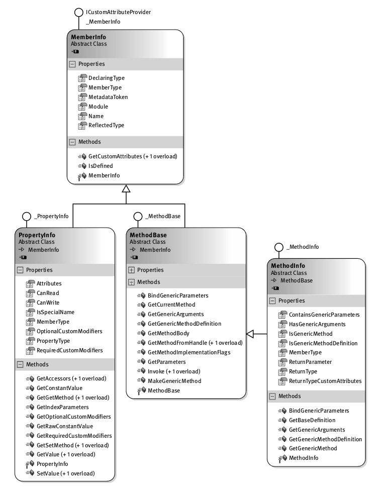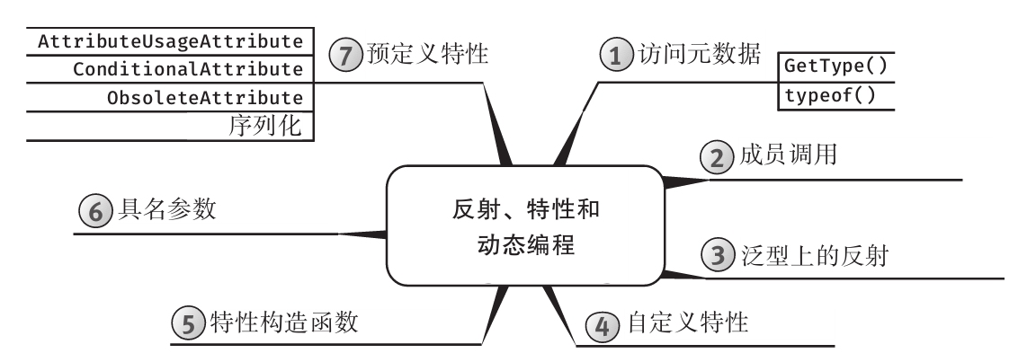 元数据在执行时通过反射 机制来使用。利用反射机制,我们可在执行期间查找一个类型或者它的成员,然后调用该成员,或判断一个特定构造是否使用了一个特性进行修饰。这样就实现了晚期绑定 ——换言之,可在执行时(而不是编译时)决定要执行的代码。反射机制甚至还用于生成文档,具体做法是遍历元数据,并将其拷贝到某种形式的帮助文档中(详情参见第18章)。