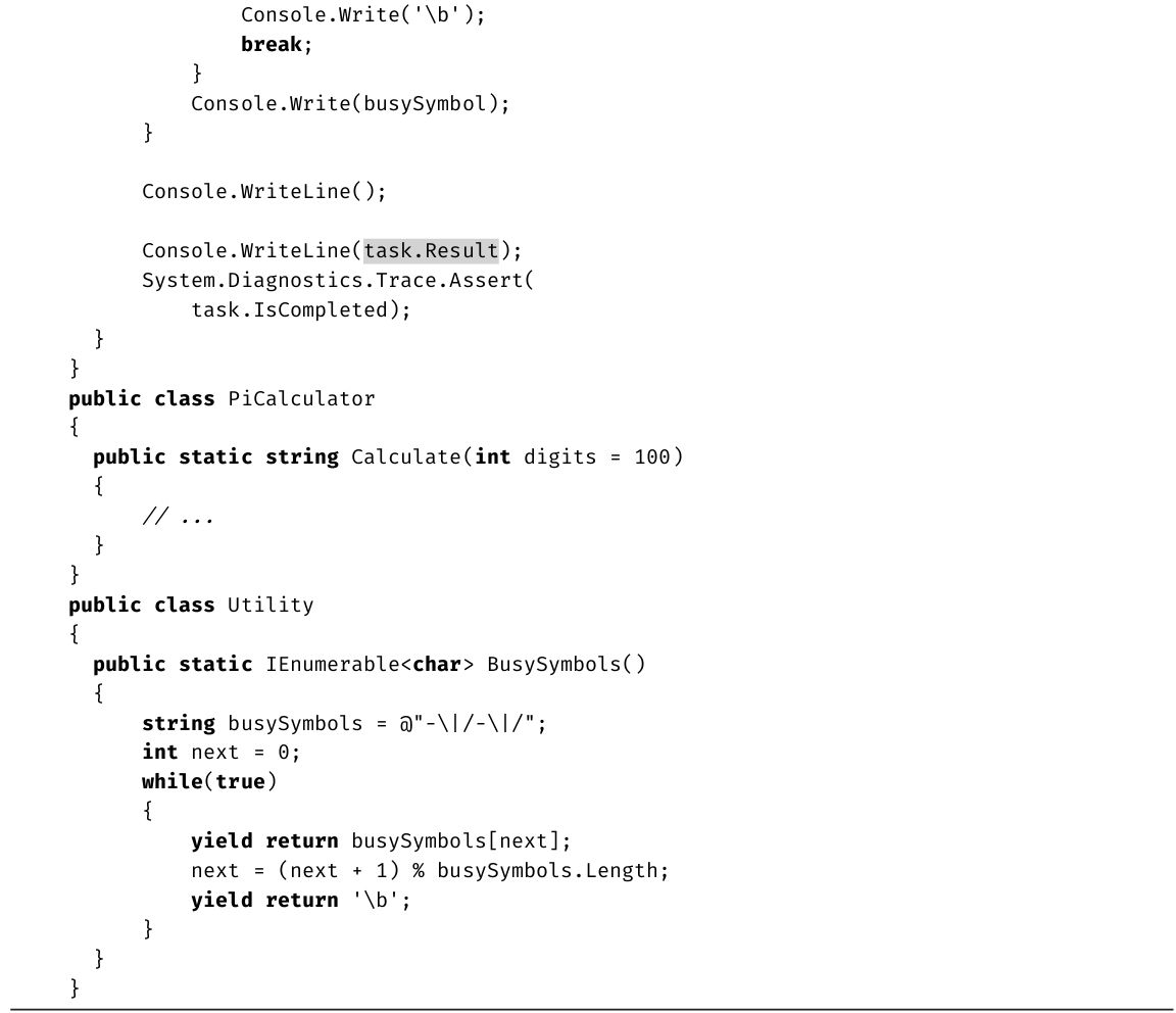 本书大多数代码都能在公共语言基础结构(Common Language Infrastructure,CLI)的任何实现上运行,但重点还是Microsoft .NET Framework和.NET Core这两个实现。很少使用平台或厂商特有的库,除非需要解释只和那些平台相关的重要概念(例如,解释如何正确处理Windows单线程UI)。
