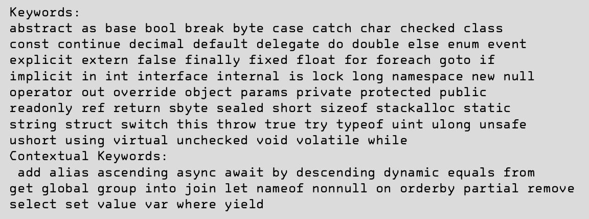·熟悉“基于对象”和“面向对象”理念的开发者: C++、Python、TypeScript、Visual Basic和Java程序员都可归于此类。对于分号和大括号,他们可是一点儿都不陌生!简单浏览一下第1章的代码,你会发现,从核心上讲,C#类似于你熟知的C和C++风格的语言。