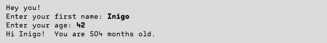 ·代码清单后列出了对应的控制台输出。由用户输入的内容加粗显示。