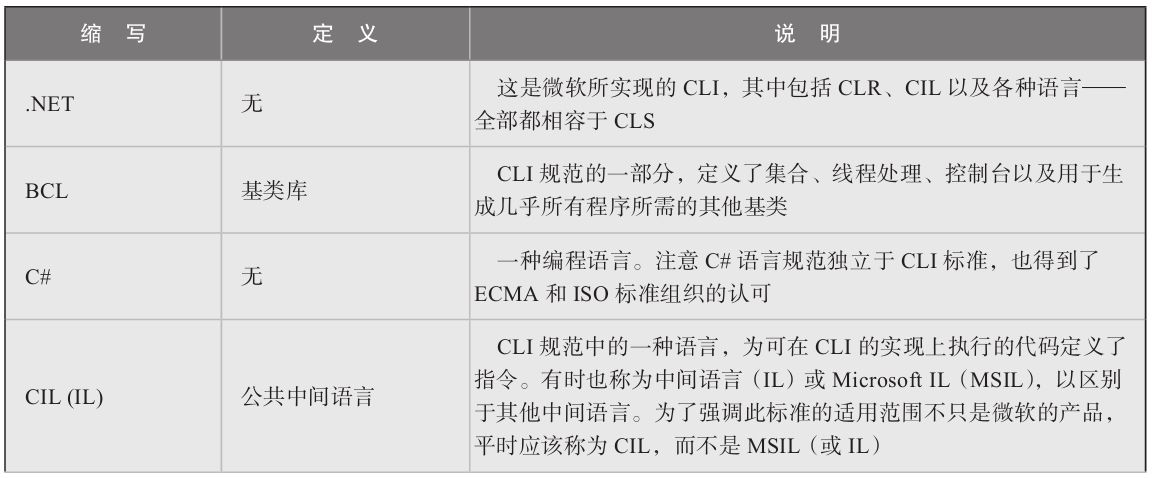本章介绍了许多新术语和缩写词,它们对于理解C#程序的运行环境具有重要意义。许多三字母缩写词比较容易混淆。表24.2简单总结了作为CLI一部分的术语和缩写词。