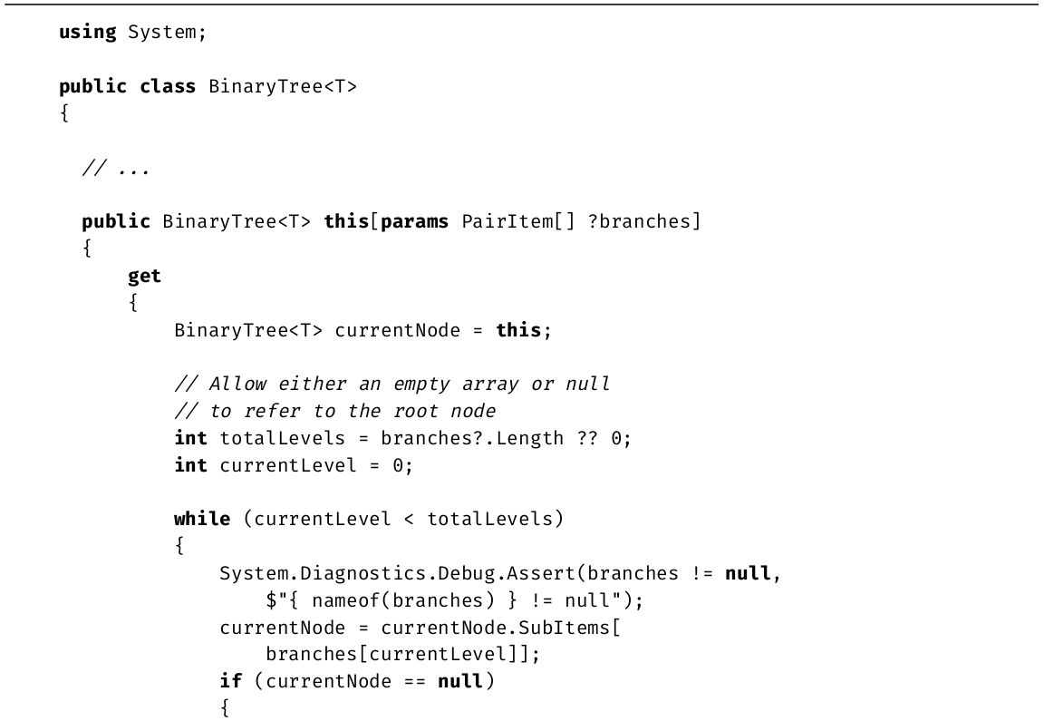 考虑到许多人还不熟悉这些主题,本书围绕它们展开了详细的讨论。涉及高级C#开发的还有“指针”这一主题,该主题将在第23章讨论。即使是有经验的C#开发者,也未必能很透彻地理解这一主题。