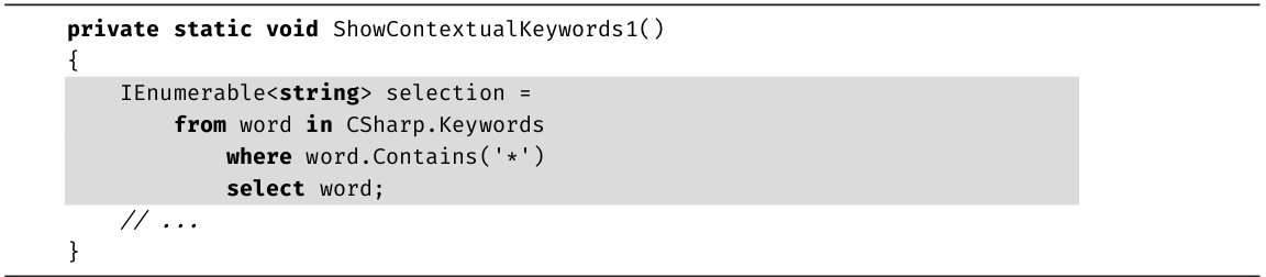 2005年LINQ(Language Integrated Query,语言集成查询)公布时,我才刚加入微软公司,正好见证了PDC会议上令人激动的公开发布时刻。虽然我对技术本身几乎没有什么贡献,但它的宣传造势我可是全程参加了。那时人人都在谈论它,宣传小册子满天飞。那是C#和.NET的大日子,至今依然令人难忘。