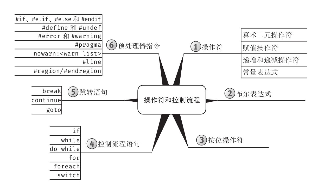 ·第4章 :计算机最擅长重复性操作,为利用该能力,需知道如何在程序中添加循环和条件逻辑。本章还讨论C#操作符、数据转换和预处理器指令。