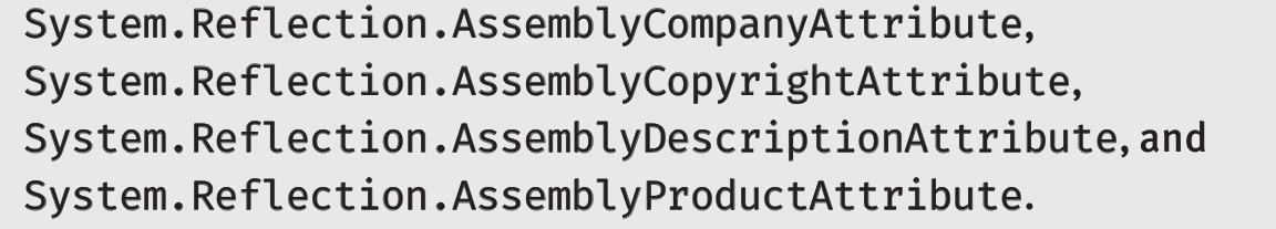 除了执行指令,CIL代码还包含与程序中包含的类型和文件有关的元数据 。元数据包含以下内容: