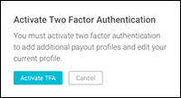 注意:为了创建付款资料和接收付款,必须在发布者帐户上使用 TFA。