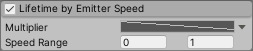 3. In the Particle System component, find the Lifetime by Emitter Speed module fold-out.