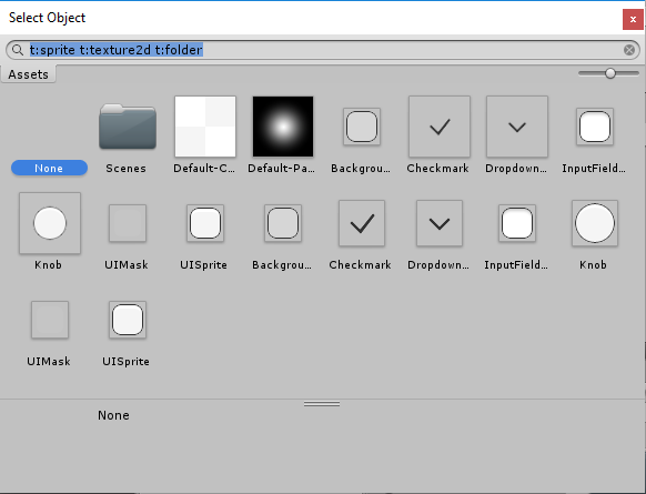 2. To add items, select the plus (+) icon at the lower right of the list to create a new row. Drag a valid Asset onto an empty row to add it to the list, or select the circle icon to the right of the row to open the Select Object window. Select an Asset from the Object Picker window to add it to the list: