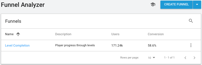 Analytics Dashboard 的 Funnel Analyzer 页面会列出已创建的漏斗图。