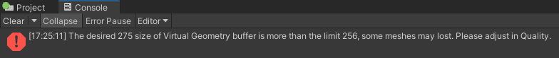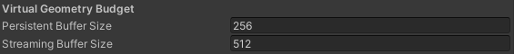团结引擎现已支持对虚拟几何体中Budget的显存占用量调整,来适配不同项目和平台的需求,提高虚拟几何体对显存的利用率。