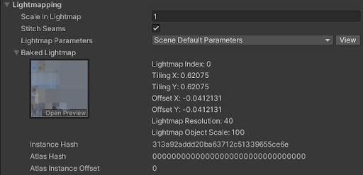 | Lightmaps | Unity provides global illumination data to this Renderer from lightmaps. | |