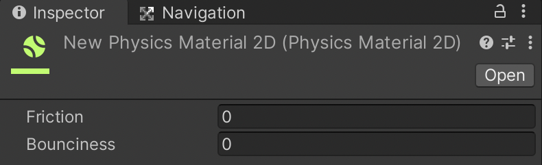 Note: The equivalent asset in 3D physics is referred to as a Physic Material.