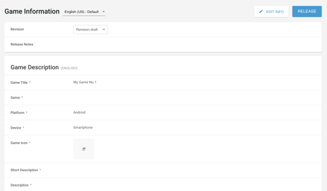 The Game Info page contains a progress bar to display how close you are to being able to release your game. Each section displays a Completed status when you have added the necessary info for that section.