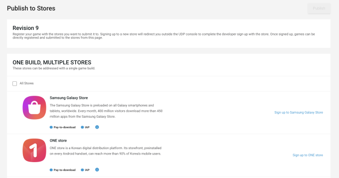 Stores which might reject your game display a warning icon in the Publish section, and a tooltip to explain the issue that might occur. UDP otherwise doesn’t modify your game’s ad implementation in any way.