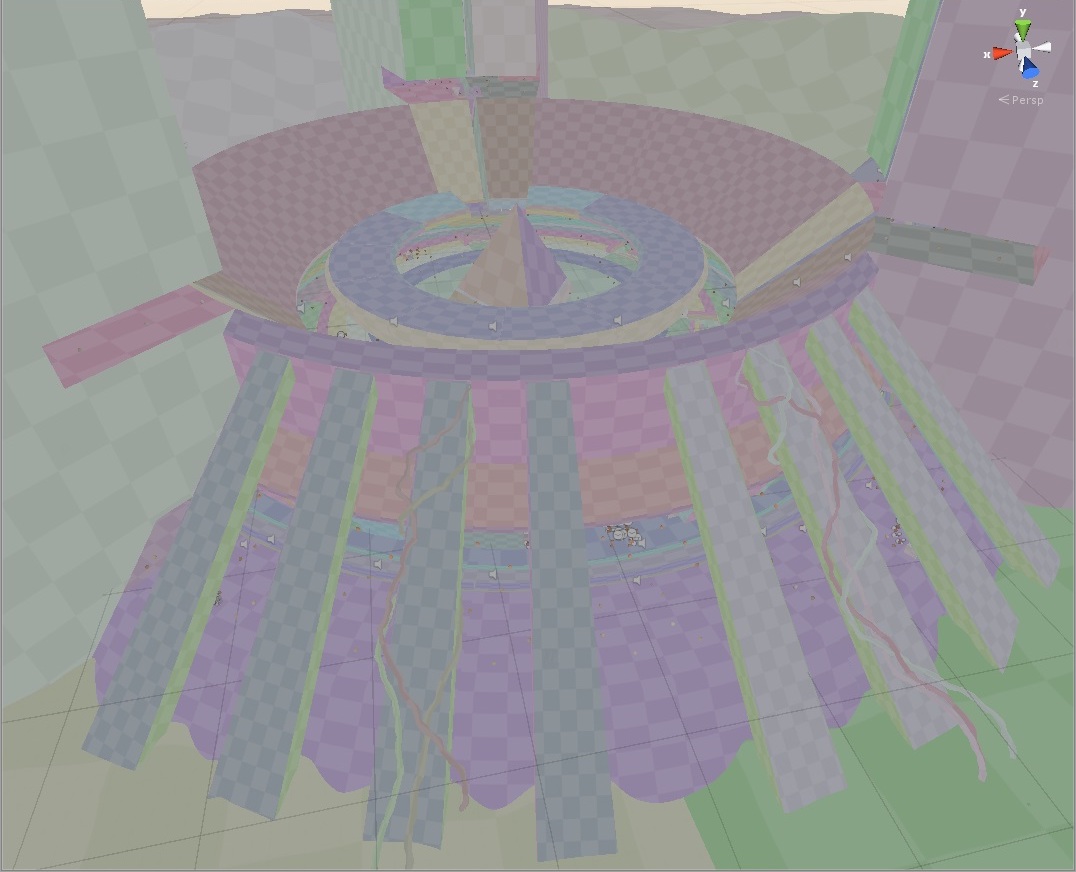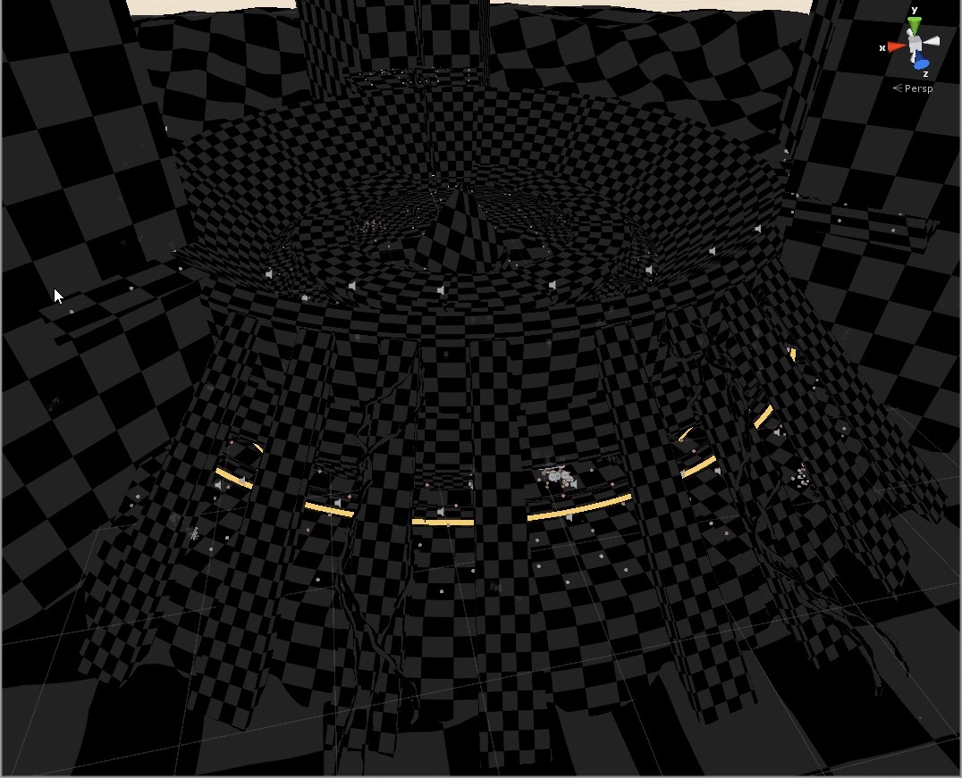 此选项显示 Enlighten 通过标记为 Contribute GI 的几何体生成的聚类。Enlighten 使用在“创建聚类”(Clustering) 步骤中生成的聚类来计算间接光照。生成的聚类应该大于光照贴图纹理像素(比率由光照贴图参数中的 Cluster Resolution 参数控制)。如果未正确设置比例,几何体转换为聚类的步骤可能会占用大量内存。 如果您看到内存使用量高或烘焙时间长,可能是因为场景中的静态几何体被切割成的数量超过了实际需要的聚类数量。聚类 Scene 视图模式可以帮助您识别需要调整 UV 或实时分辨率 (Realtime Resolution) 的几何体。