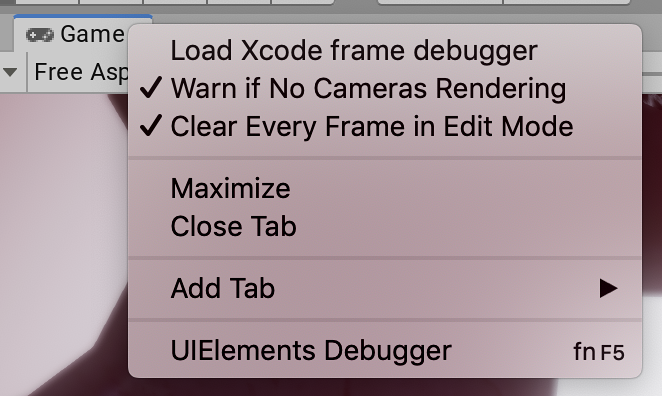 右键单击 Game 选项卡可以显示 Game 视图的高级选项。