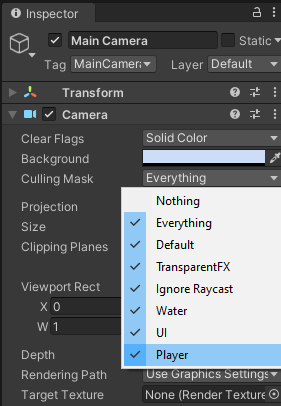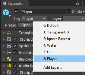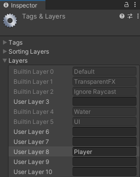 在 Tags and Layers 窗口中,Player 层分配给第 8 层。