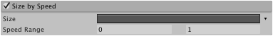 This module is part of the Particle System component. When you create a new Particle System GameObject, or add a Particle System component to an exiting GameObject, Unity adds the Size by Speed module to the Particle System. By default, Unity disables this module. To create a new Particle System and enable this module: