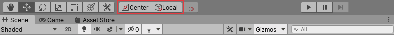 变换__工具组合了__移动、旋转__和__缩放__工具。该工具的辅助图标提供了用于移动和旋转的控制柄。当 Tool Handle Rotation__ 设置为 __Local__(见下方)时,变换组件工具还提供用于缩放所选游戏对象的控制柄。