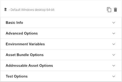 When you’ve configured your project in Unity Cloud Build, you can set up advanced build options for each of your build targets.