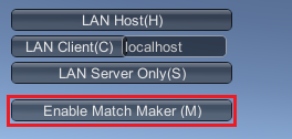 6.构建并运行项目。Network Manager HUD 将显示游戏内菜单。单击 Enable Match Maker。