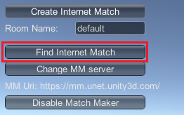 8.运行项目的更多实例,然后在这些客户端上单击 Find Internet Match。现在应该会显示房间名称。