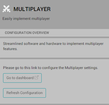 按 Go To Dashboard 按钮将显示基于 Web 的 Services Dashboard,可在其中设置项目的 Multiplayer 配置。