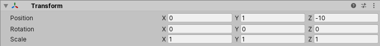 Transform 组件确定每个对象在场景中的 Position、Rotation 和 Scale 属性的值。每个游戏对象都有一个变换组件。