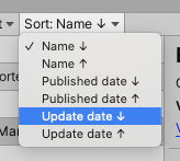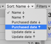 您随时可以按包名称进行升序或降序排序。根据列表上下文,您还可以按一个或多个日期进行排序。