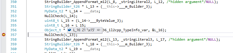 IL2CPP 使用本机 C++ 异常来实现 .NET 异常。当应该抛出某种异常时,IL2CPP 将抛出 Il2CppExceptionWrapper 对象,其定义如下: