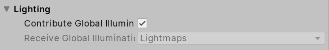 Contribute Global Illumination | Enable this check box to indicate to Unity that the Terrain influences Global Illumination computations. When you enable this property, Lightmapping properties appear. | |