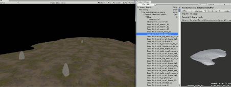 单击列表中的某项将显示该场景(在 Game 视图中)截止到并包括该绘制调用的情况。工具栏中的左右箭头按钮用于在列表中向前和向后移动一步,您也可以使用箭头键来实现相同效果。此外,窗口顶部的滑动条可让您在绘制调用中快速拖动来迅速定位要关注的事项。如果绘制调用对应于游戏对象的几何体,则会在主 Hierarchy 面板中突出显示该对象以便于识别。
